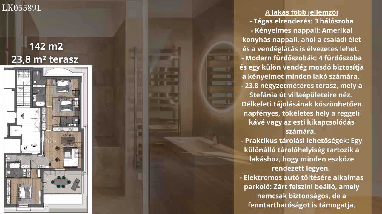 Jelenleg ezek a lakások várják új tulajdonosukat a Stefánia Villalakásokban. Minden lakás különleges hangulatot, igényes belső kialakítást és modern kényelmi megoldásokat kínál.