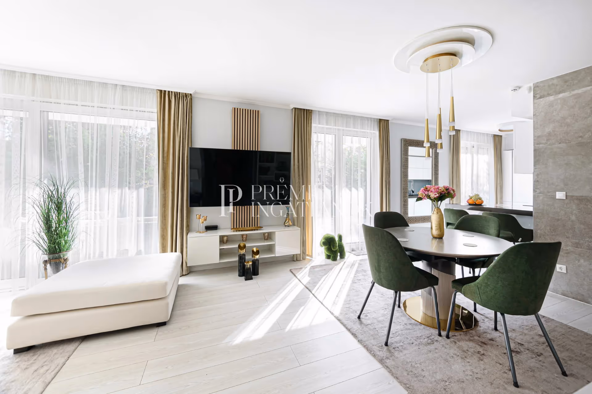 Az elegáns és modern berendezés mellett a lakás különleges hangulatot sugároz, ami tökéletes helyszínt biztosít a mindennapi élethez és a pihentető hétvégekhez egyaránt.