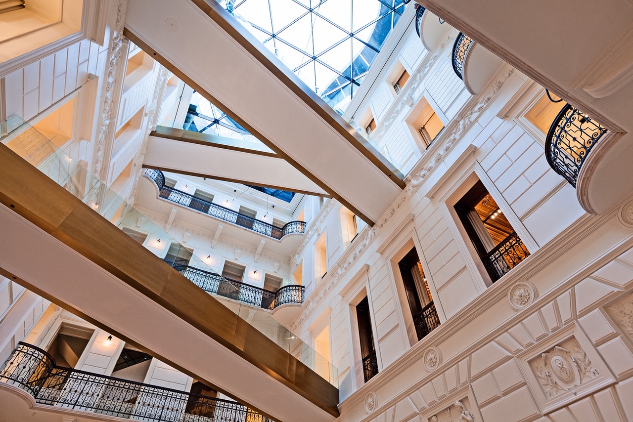 Az Andrássy úton található, 19. századi neoreneszánsz palota 2013-ban díjnyertes felújításon esett át, amely megőrizte a történeti részleteket (piano nobile reprezentatív terei, eredeti falburkolatok és mennyezetek), miközben kortárs, minimalista luxus elemekkel egészítette ki az épületet. A belső terek hangulata a nyilvános és személyzeti zónákban egyaránt prémium minőségű; a felső szinteken a dizájn fokozatosan letisztultabb, a tetőszerkezetben tetőzik a modern atmoszféra.