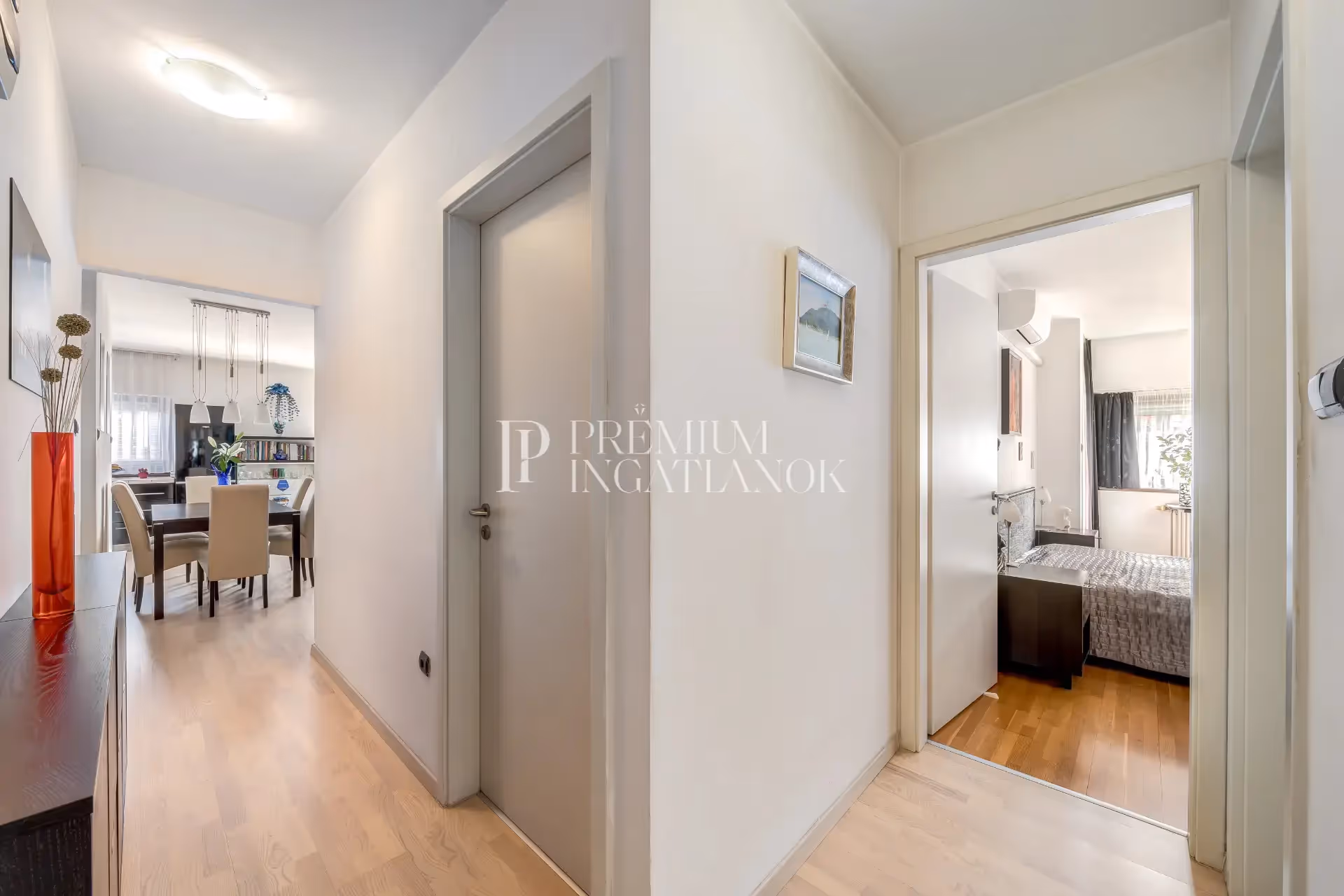For sale in one of the most sought-after areas of Budapests 13th district, on Viza Street, in the popular Riverside Residential Park, a 89 m², dual-comfort, panoramic premium apartment.