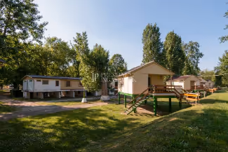 A területen több épület és építmény is található, pl.: Motel, Étterem, medence, apartmanházak, stb. Jelenlegi formájában is üzemeltethető, de a további hasznosítások lehetősége is számtalan....