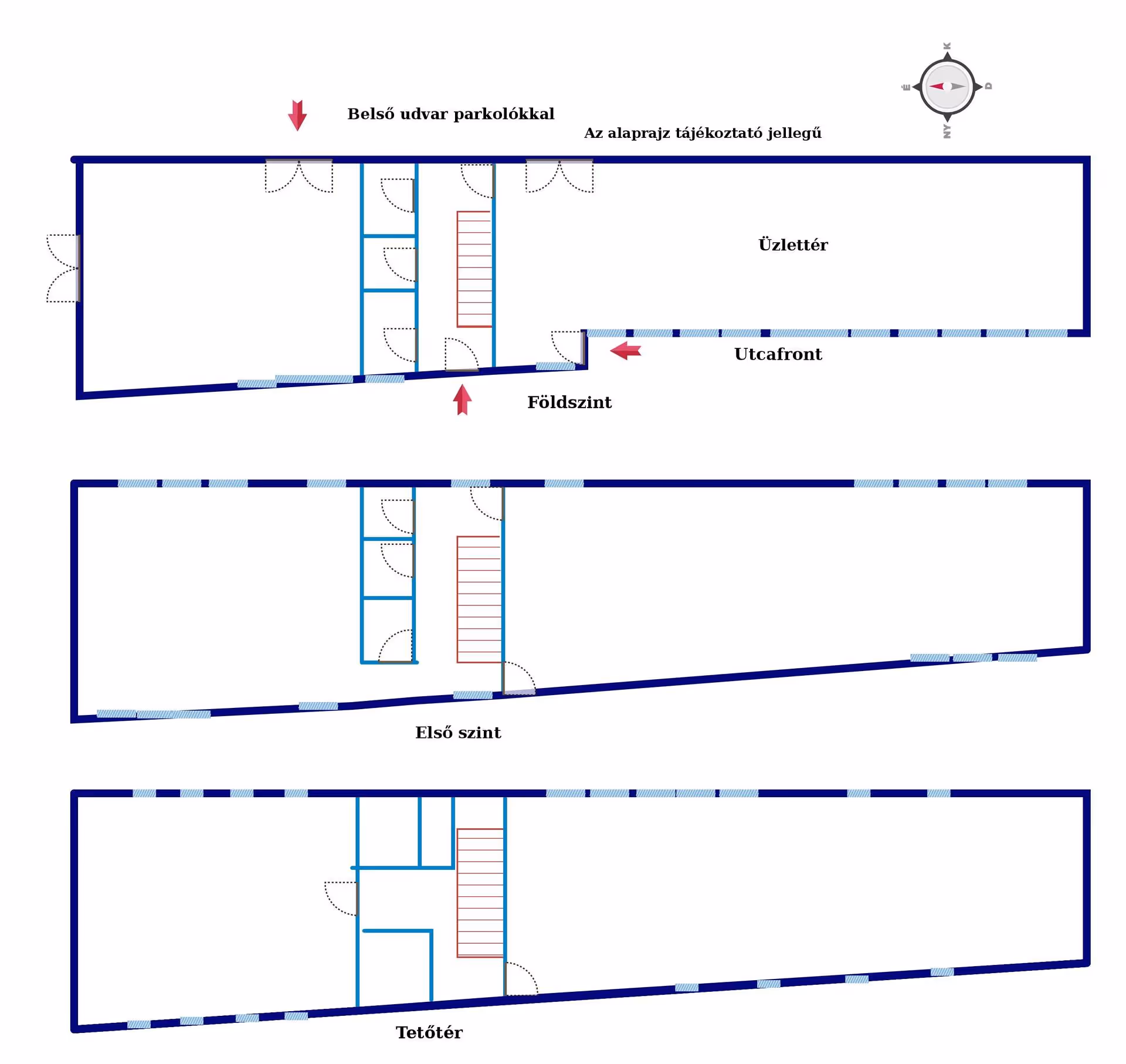 Az ingatlan egyben, vagy külön-külön egységenként is hasznosítható. A nyitott helyiségeket vagy a zárt irodákat előnyben részesítők egyaránt megtalálják itt az igényeiknek megfelelő területet.