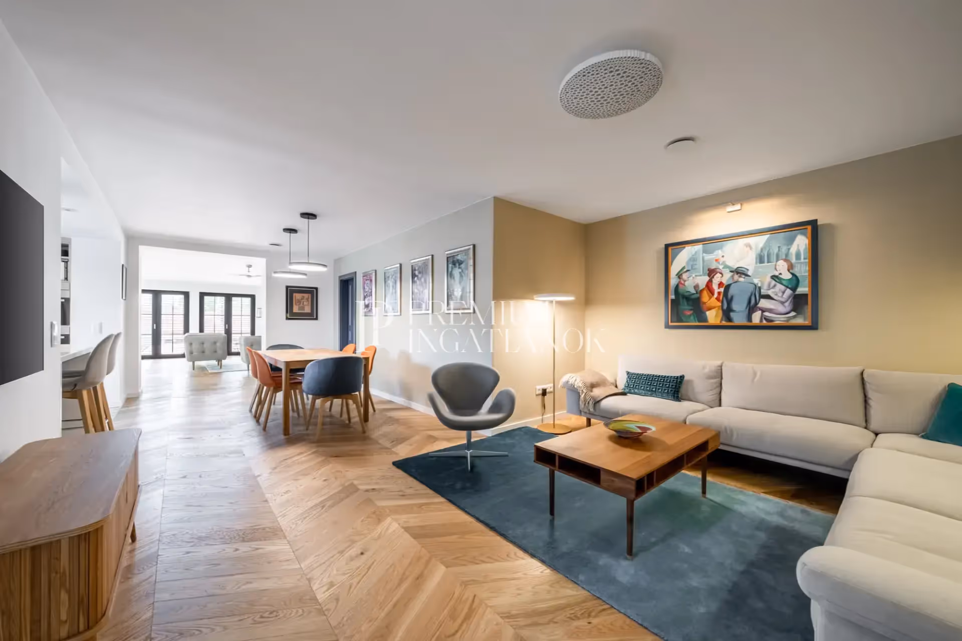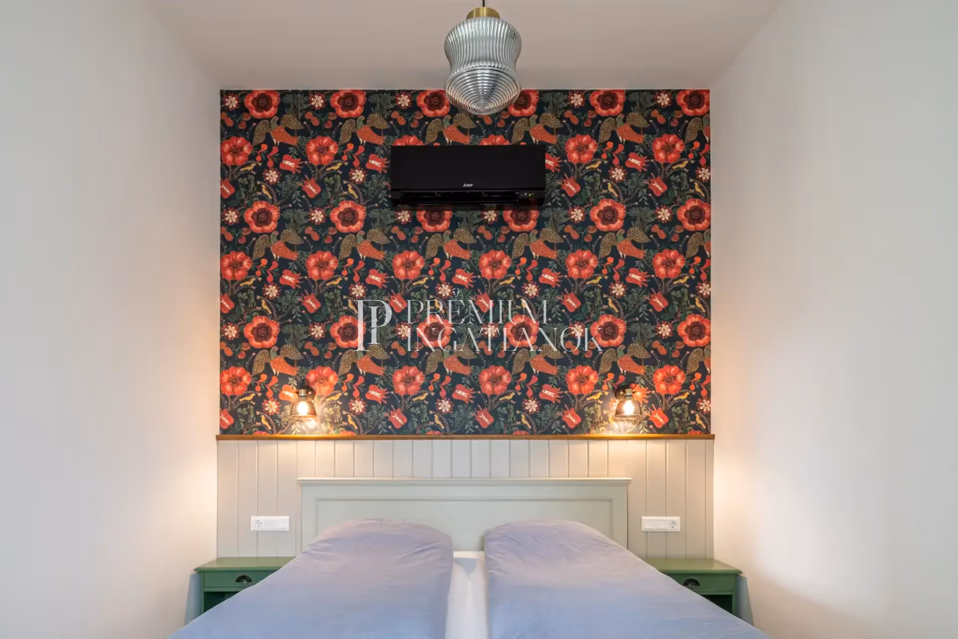 A mintegy 200 m2-es főépületben a tulajdonosok a ház eredeti báját ötvözték a 21. századi luxussal.