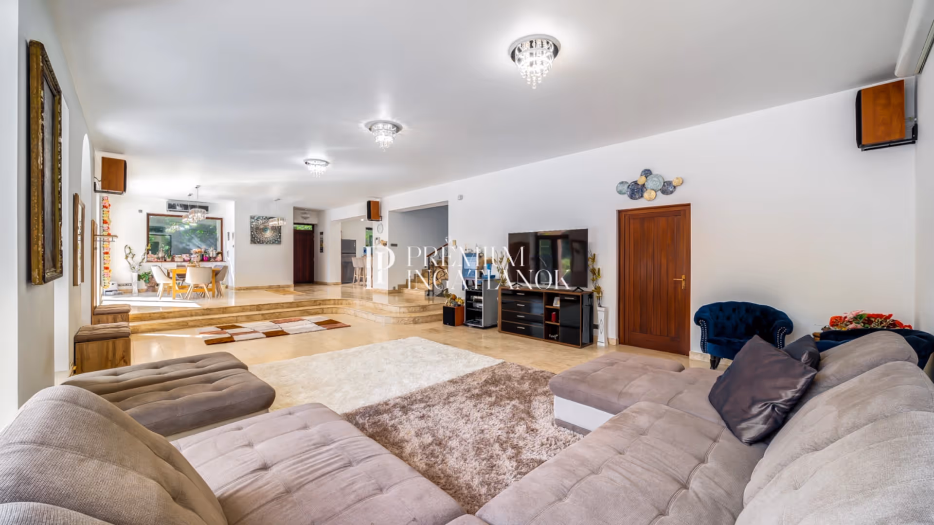 - Impozáns villaépület: 458 m²-es luxusvilla tágas nappalival és több hálószobával; elegáns, prémium minőségű belső terek igényes kialakítással.