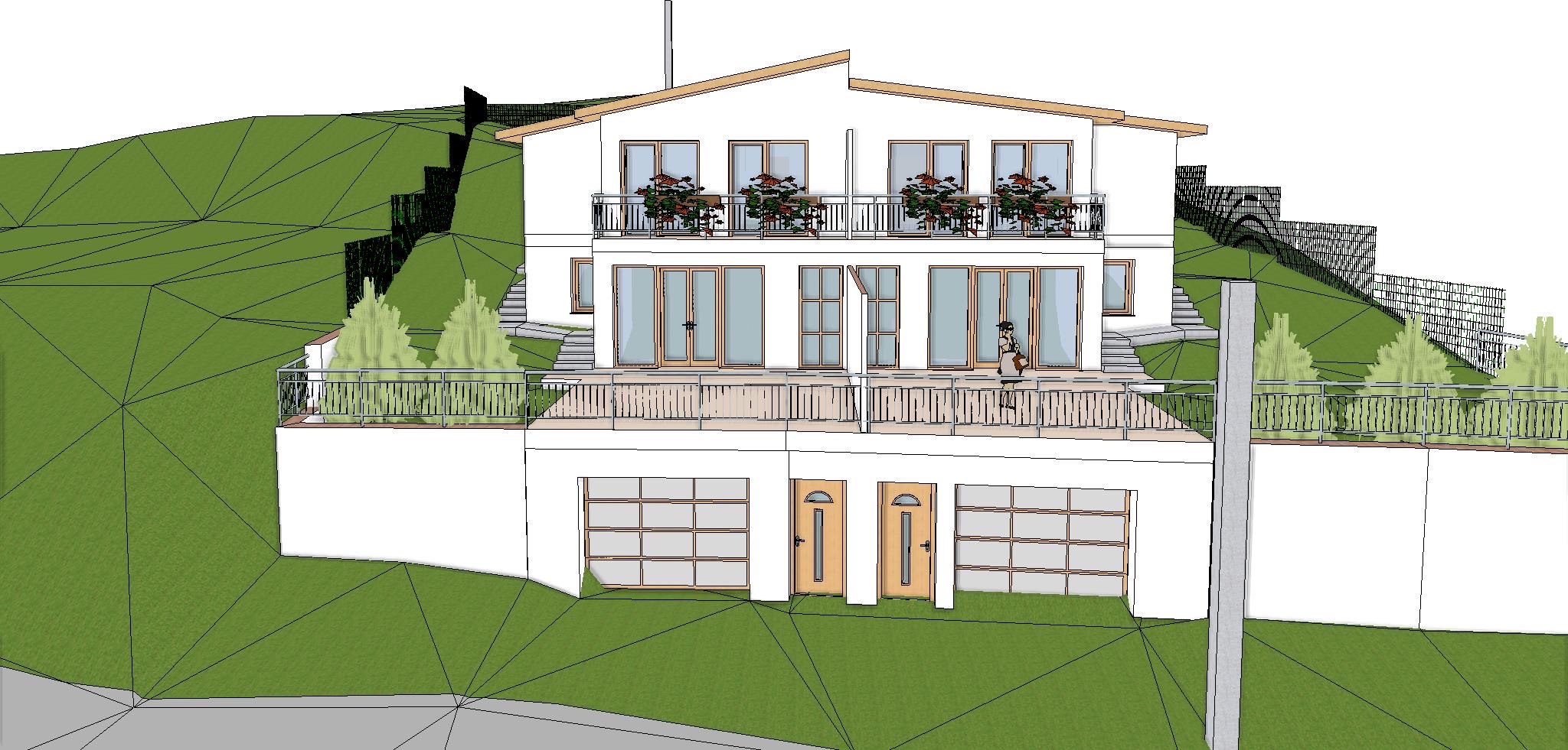 - 2. emelet: 2 hálószoba, nagyméretű fürdőszoba, 2 erkély.