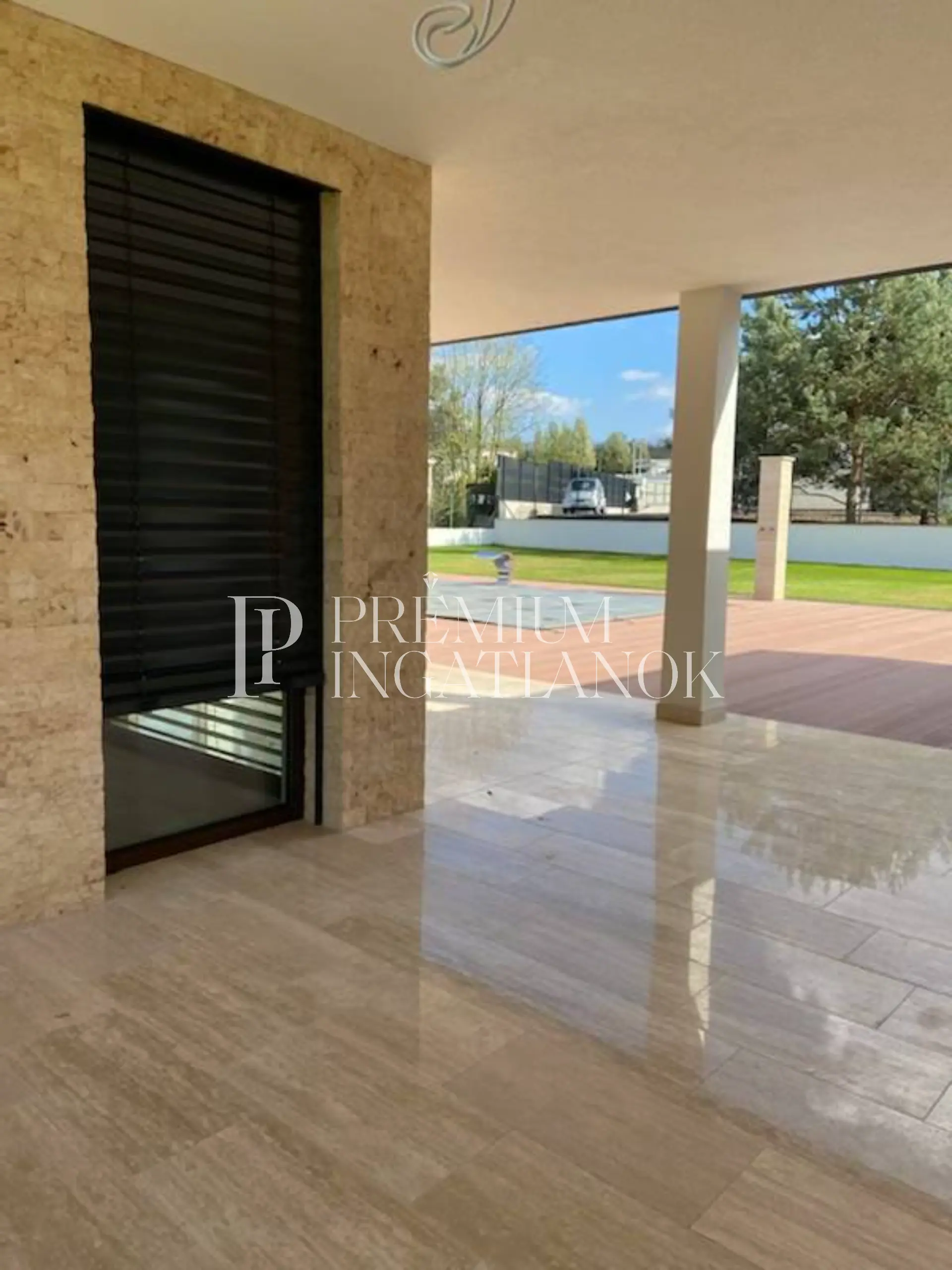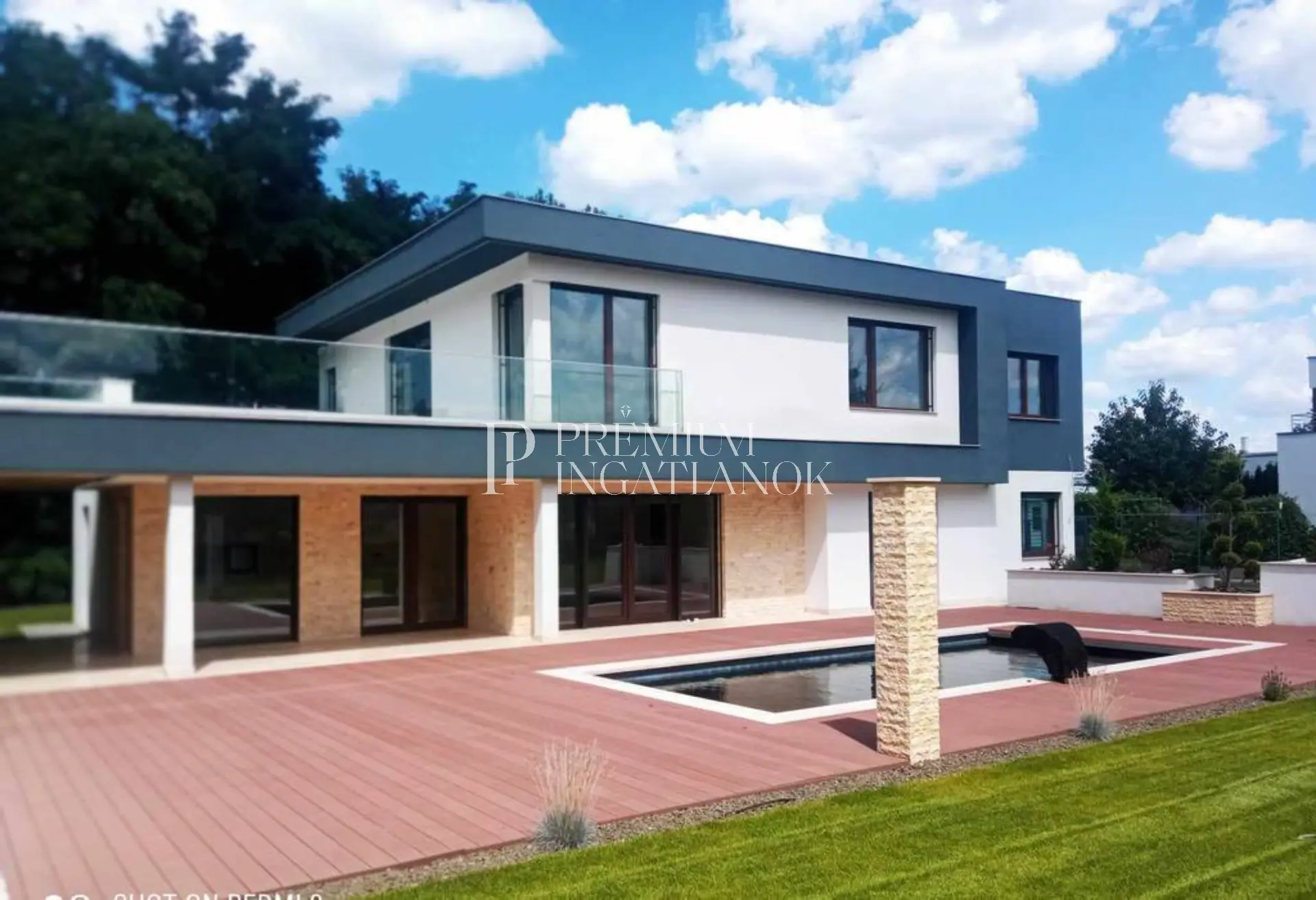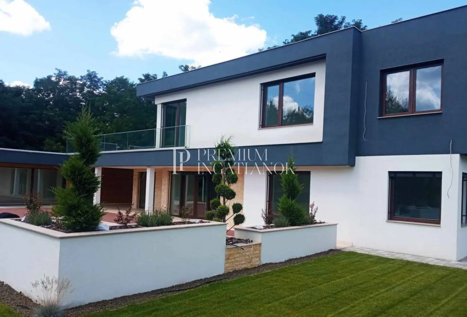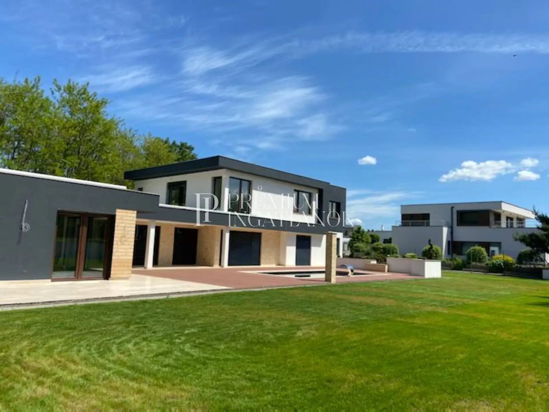 Eladó egy Budapesttől karnyújtásnyi távolságra található, zárt, őrzött luxus villaparkban álló, önálló, 416 m²-es, okosotthon-rendszerrel felszerelt családi villa 1 654 m²-es, parkosított telken, kétállásos teremgarázzsal.