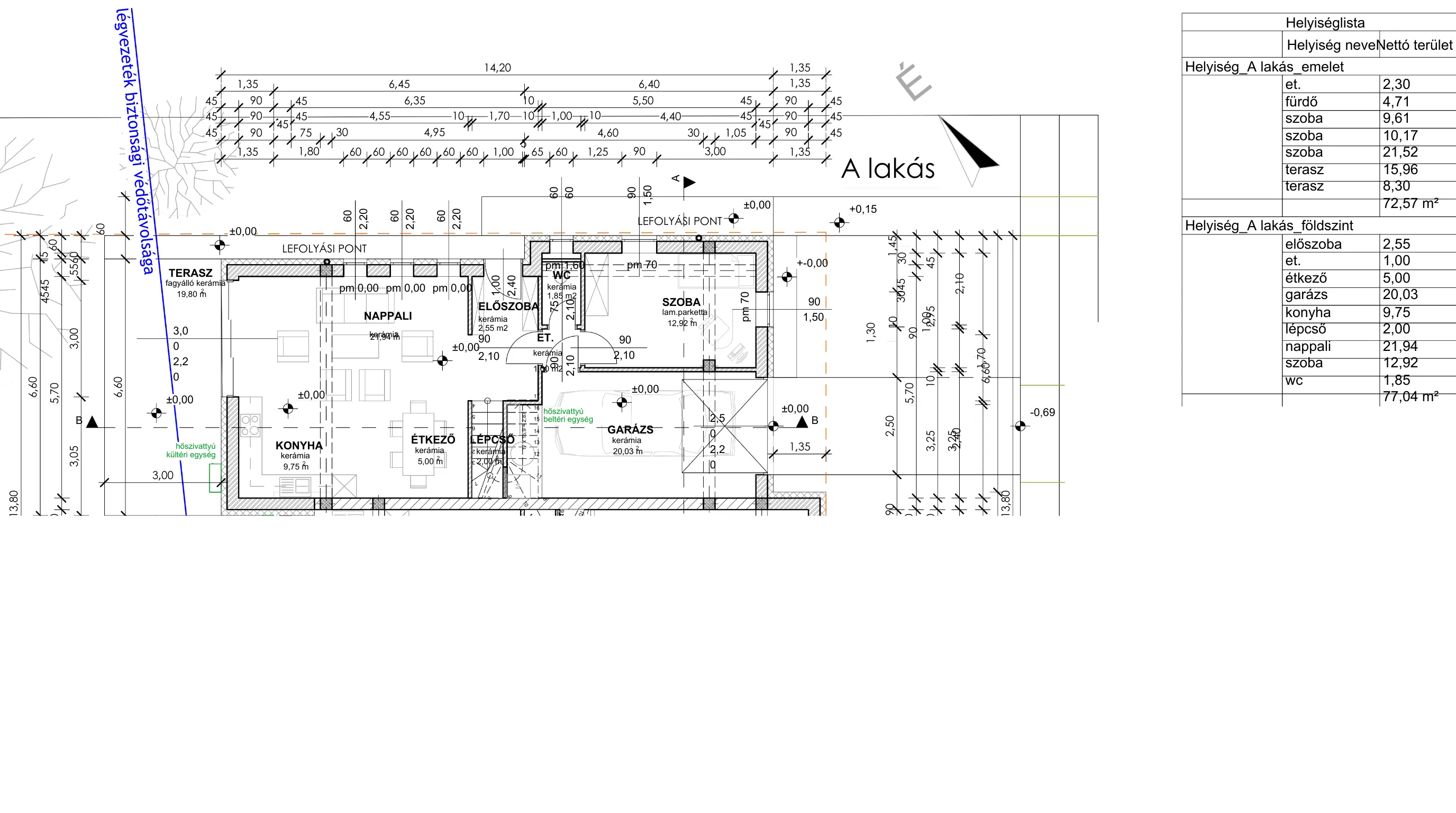 A bejáraton belépve egy tágas előszoba fogadja, ahonnan a világos, 21,94 m²-es nappaliba léphetünk. A nappali közvetlen kapcsolatban áll a 9,75 m²-es konyhával és az étkezővel, így a családi élet minden pillanata egy légtérben, mégis jól szeparálhatóan zajlhat. A földszinten található továbbá egy kényelmes, 20,03 m²-es garázs, amelyből közvetlen bejárás biztosított a lakótérbe, valamint egy háztartási helyiség és vendégmosdó. A nappaliból kilépve egy 18,00 m²-es terasz biztosítja a kertkapcsolatot.