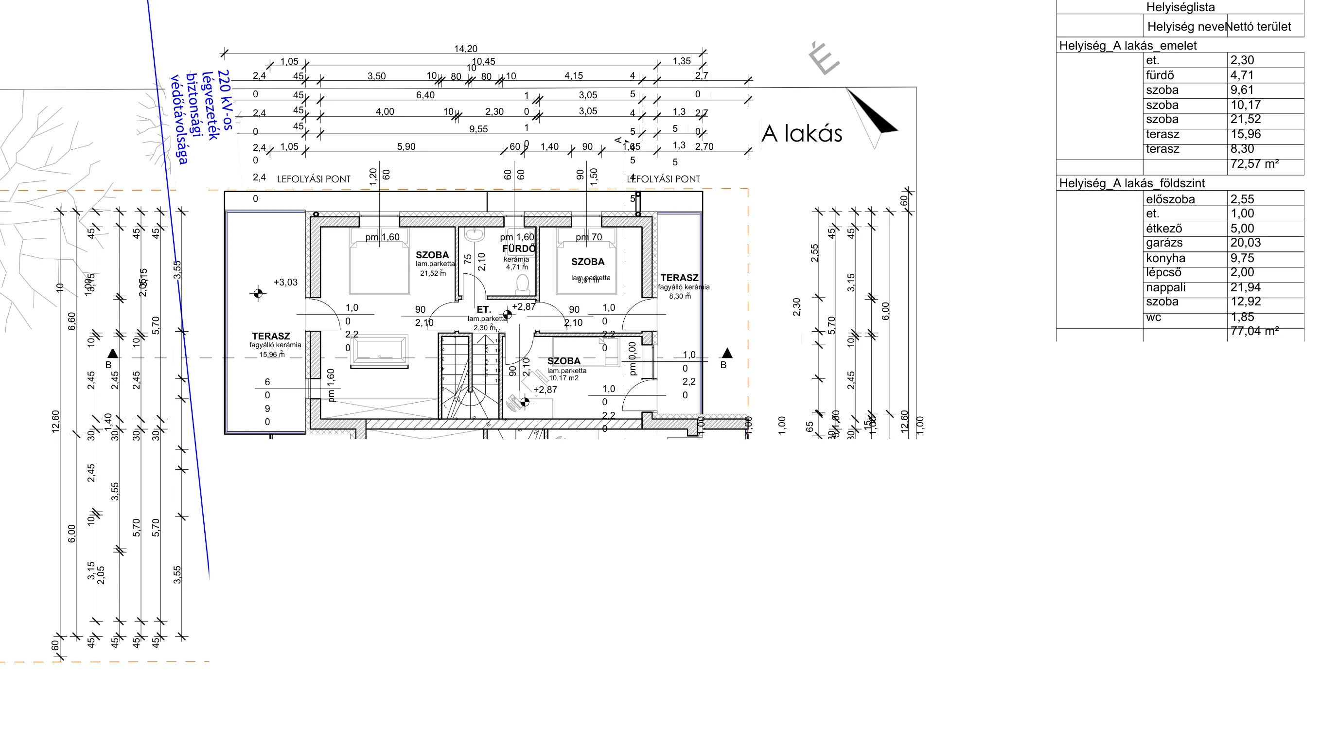 Az emeleten három teljes értékű hálószoba kapott helyet. Kiemelkedik közülük a 21,52 m²-es szülői háló, amelyhez a szinten lévő többi szobához hasonlóan közvetlen teraszkapcsolat tartozik. Az emeleti fürdőszoba 4,71 m², kényelmes életteret biztosítva a reggeli készülődéshez. A szintet két, összesen több mint 24 m²-nyi terasz öleli körül, üvegkorláttal, amely modern és légiessé teszi az épületet.