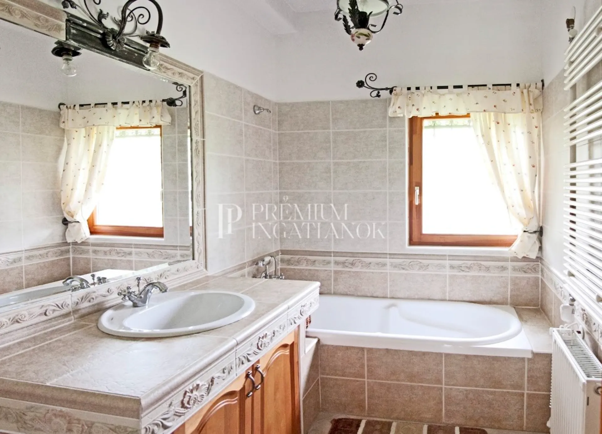 Az épület kivitelezését gondos mesteremberek munkája dicséri. Tágas belső terek, csodálatos famunkák, épített búboskemence és két cserépkályha teszik otthonossá.