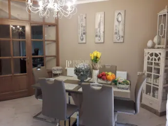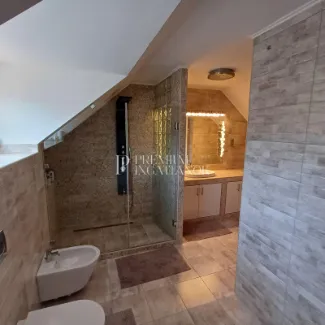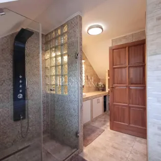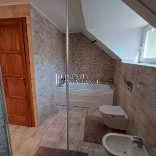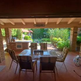Az eredetileg 1991-ben épült, 2 önálló házból álló ingatlan 2020-ban teljesen át lett építve, minden tekintetben fel lett újítva. Állapota ma is kifogástalan, egy személy által lakott. A ház fűtését gázcirkó és hűtő-fűtő klímaberendezések biztosítják, így télen meleg, nyáron pedig kellemesen hűvös a belső tér. A ház 215 m2-es, a telek 480 m2. 2 hálószoba és hozzá tartozó 1-1 fürdőszoba található a tetőtérben, valamint a földszinten találjuk a teraszkapcsolatos nappalit, a nagy méretű étkező-konyhát és a garázst. Egy földszinti teraszkapcsolatos szoba és a hozzá tartozó fürdőszoba beépítése (összesen 33 m2) az új tulajdonosra vár - vagy megegyezés szerint a jelenlegi tulajdonos is elvégeztetheti ezt. Ennek tervezett költsége kb 6-7 MFt. Ennek a résznek állnak a falai és a vezetékek is bent vannak.