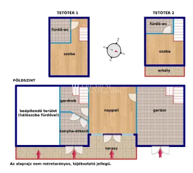 Az ingatlan sajátossága, hogy - mivel eredetileg két épületből állt - így két külön tetőtere van, ahová két külön lépcsősor vezet fel. Emiatt ez az ingatlan főleg azoknak fog tetszeni, akiknek már nagyobbak a gyerekei, vagy vendégszobaként szeretnék használni az egyik hálót és nem fontos az, hogy a szülők és a kisgyerekek hálószobája egymás mellett legyen.Gárdony-Agárd ideális választás azok számára, akik a városi nyüzsgéstől távol, közel szeretnének élni a természethez. A közeli Velencei-tó és a környező zöld területek számtalan szabadidős tevékenységre adnak lehetőséget a kerékpározástól kezdve a vízi sportokig, emellett az infrastrukturális lehetőségek is kitűnőek: van vasútállomás, orvosi rendelő, iskola, és rengeteg bevásárlási lehetőség is rendelkezésre áll.
