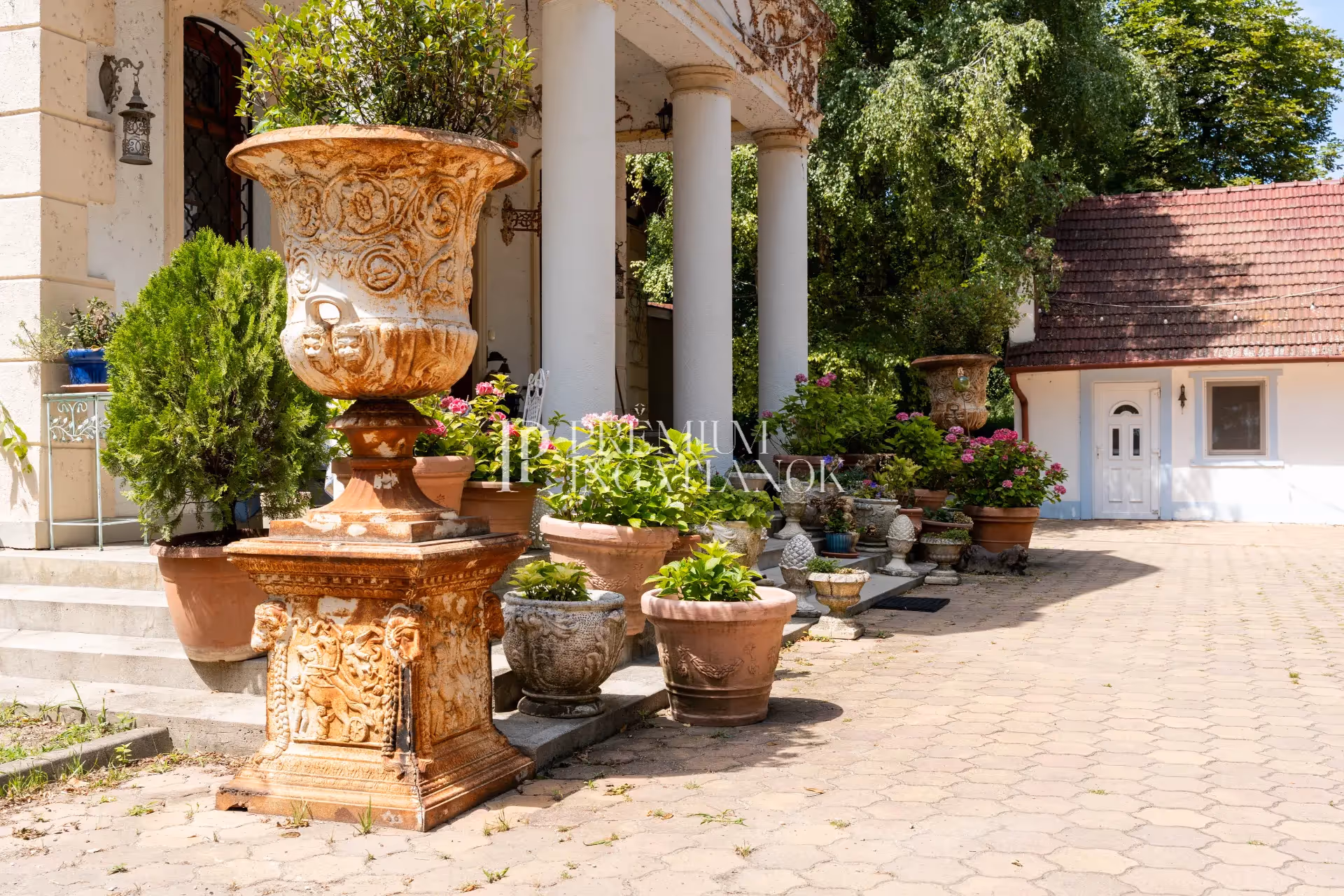 A birtokot évszázados fenyők, tuják és ritka Ginkgo Biloba fák ölelik körül, teljes őspark jelleggel. A biztonságról korszerű kamera- és infrasorompó rendszer, valamint több mint 2 méteres kőkerítés gondoskodik.