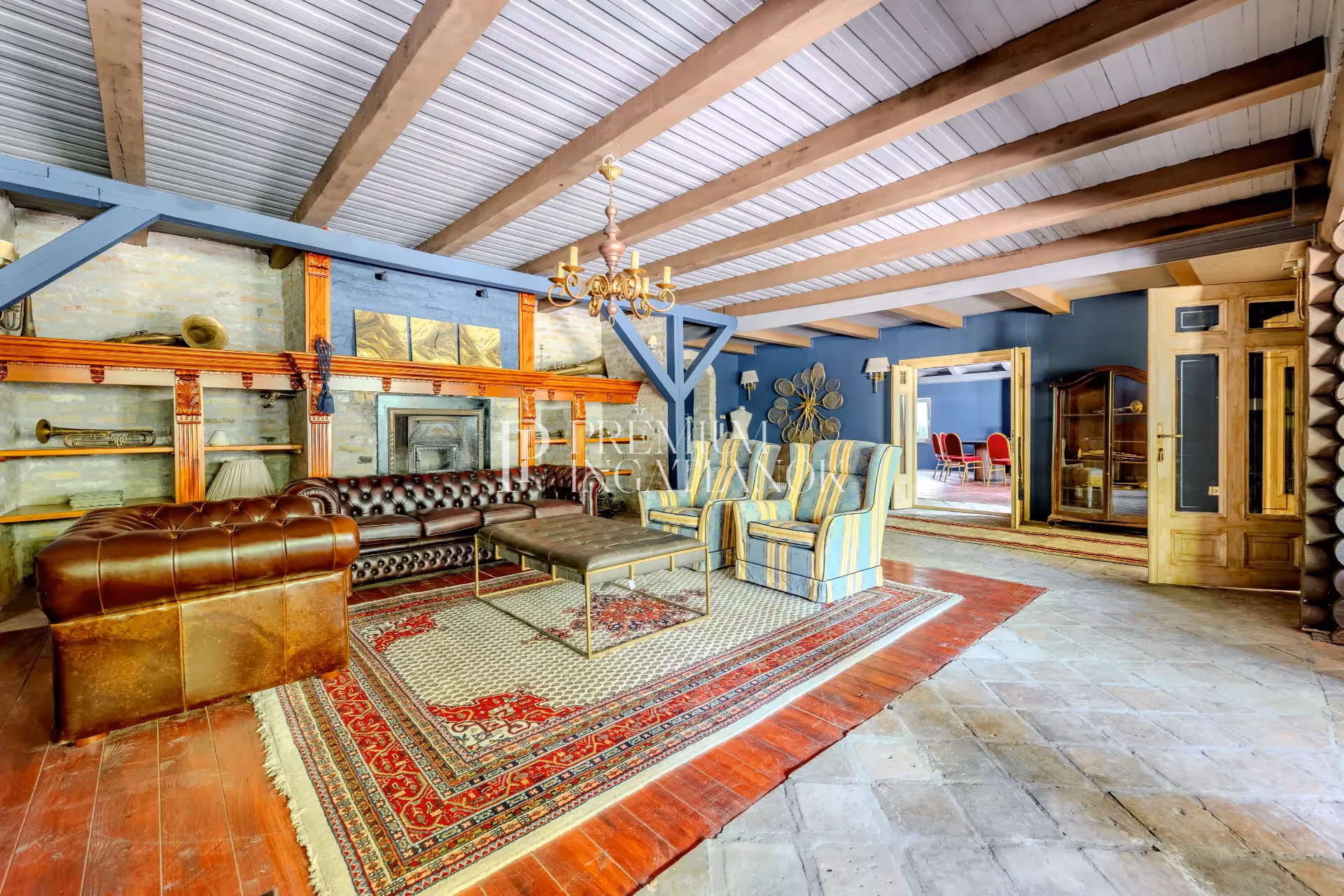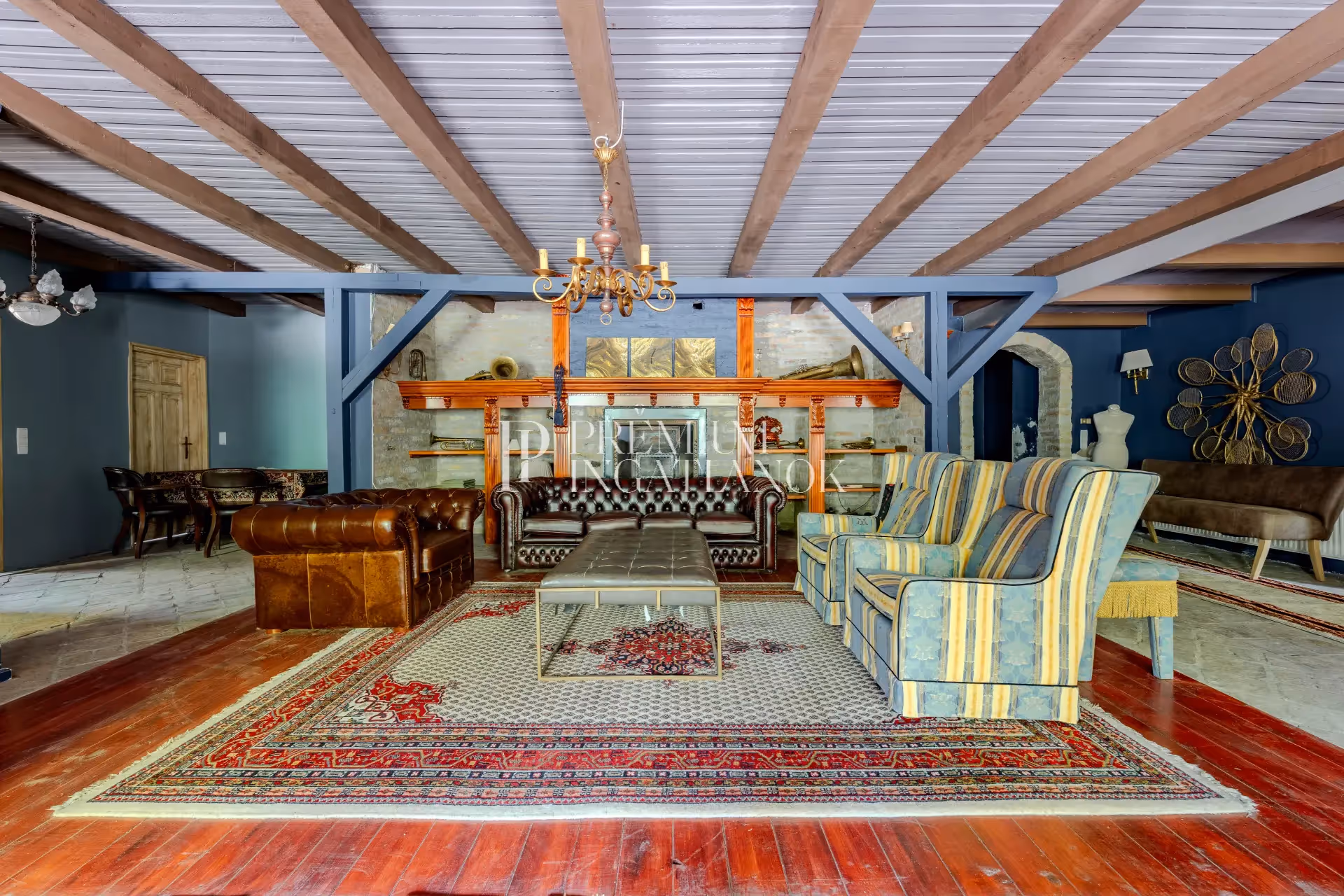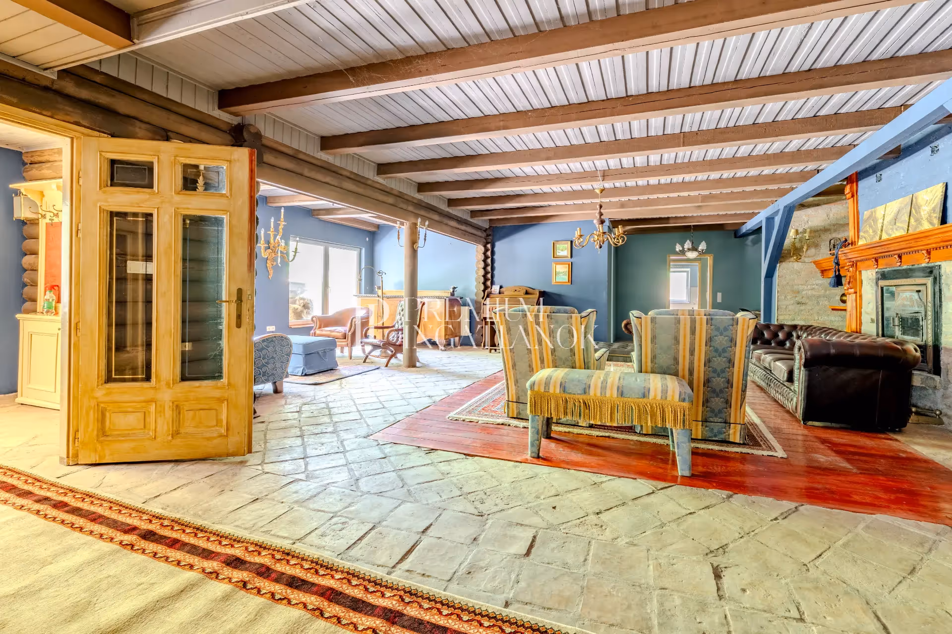 Discover a uniquely atmospheric, 300 m², two-storey Siberian log house, where the warmth of home meets the timeless appeal of natural materials complemented by a professionally designed business space.