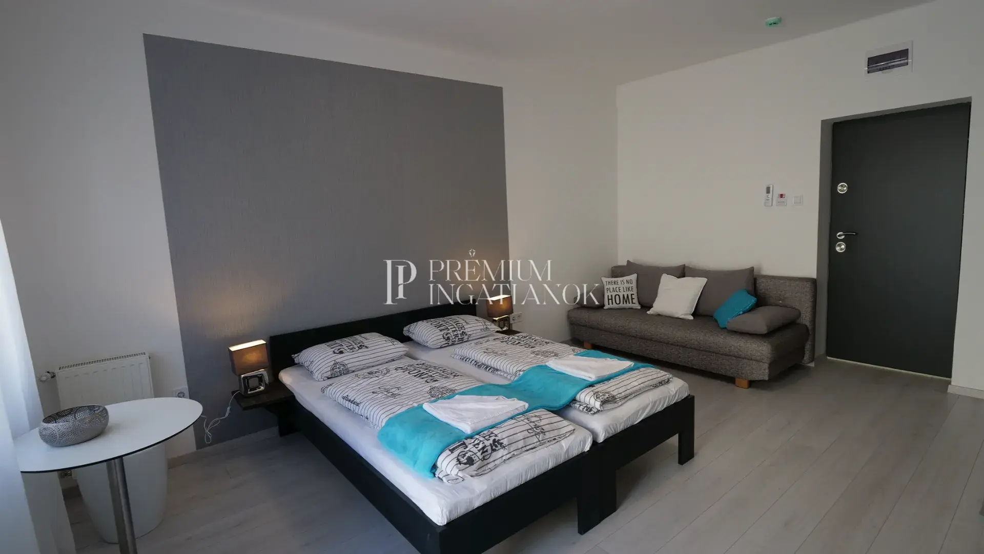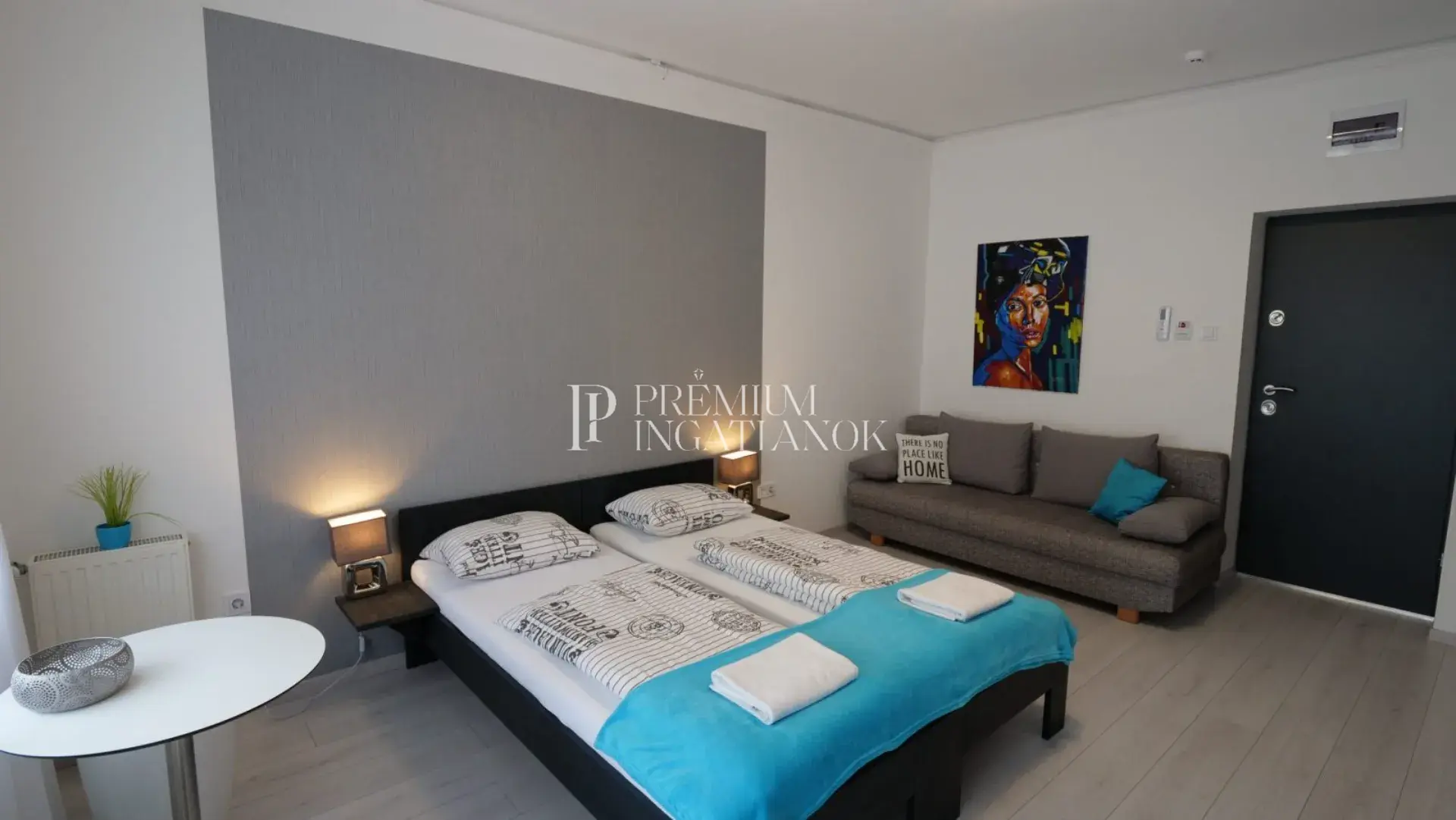3 db 1 szobás, 2 db 2 szobás lakrész található, melyek mind erkéllyel rendelkeznek, + 1 db közös teakonyha áll rendelkezésre a vendégek számára.
