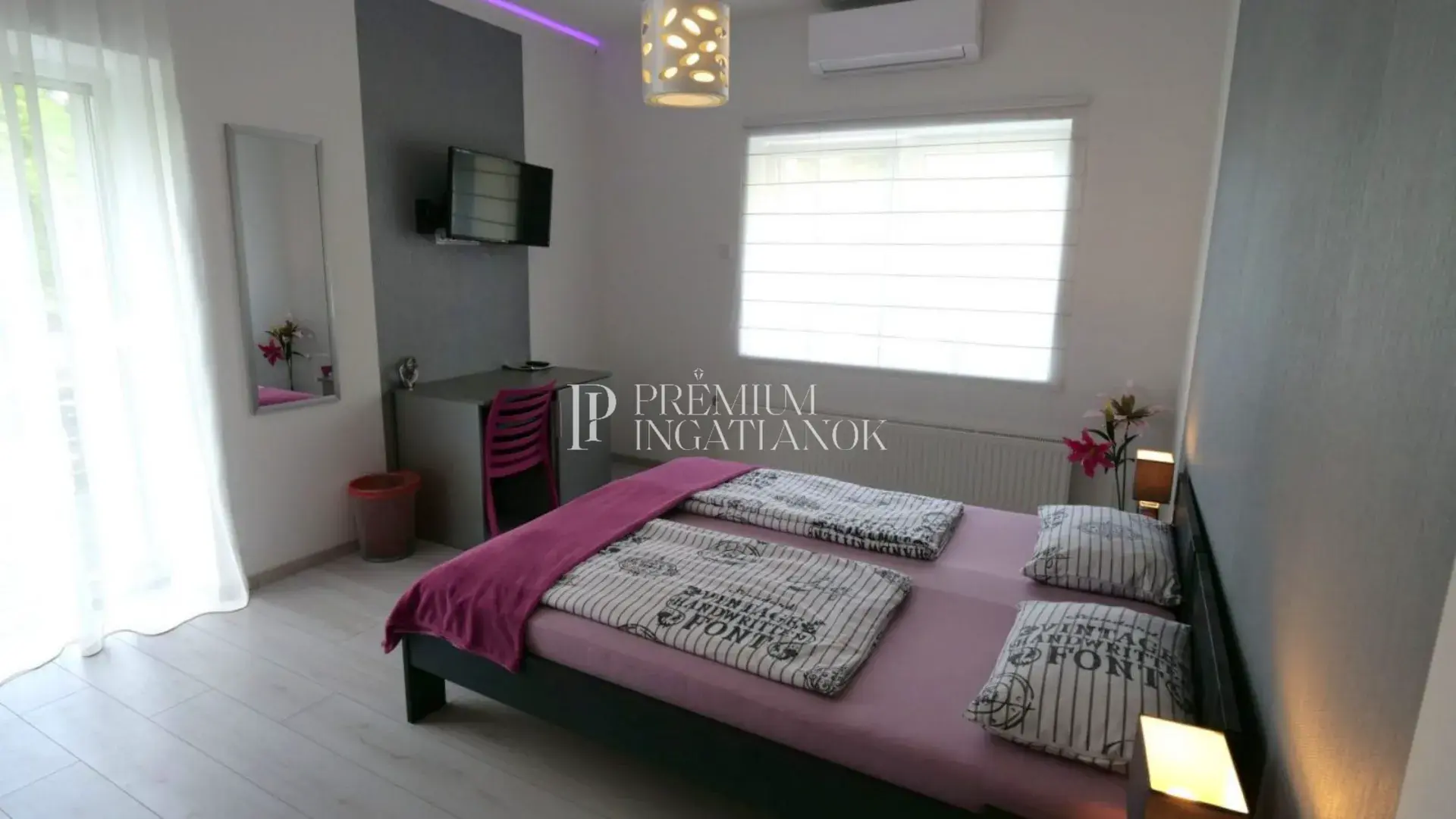 BALATONFÜREDEN, 300 MÉTERRE A VÍZPARTTÓL, JELENLEG HOTELKÉNT ÜZEMELŐ, FELÚJÍTOTT 17 SZOBÁS VILLA ELADÓ!TELJES BERENDEZÉSSEL, HONLAPPAL, VISSZATÉRŐ VENDÉGKÖRREL, TEHERMENTESEN!