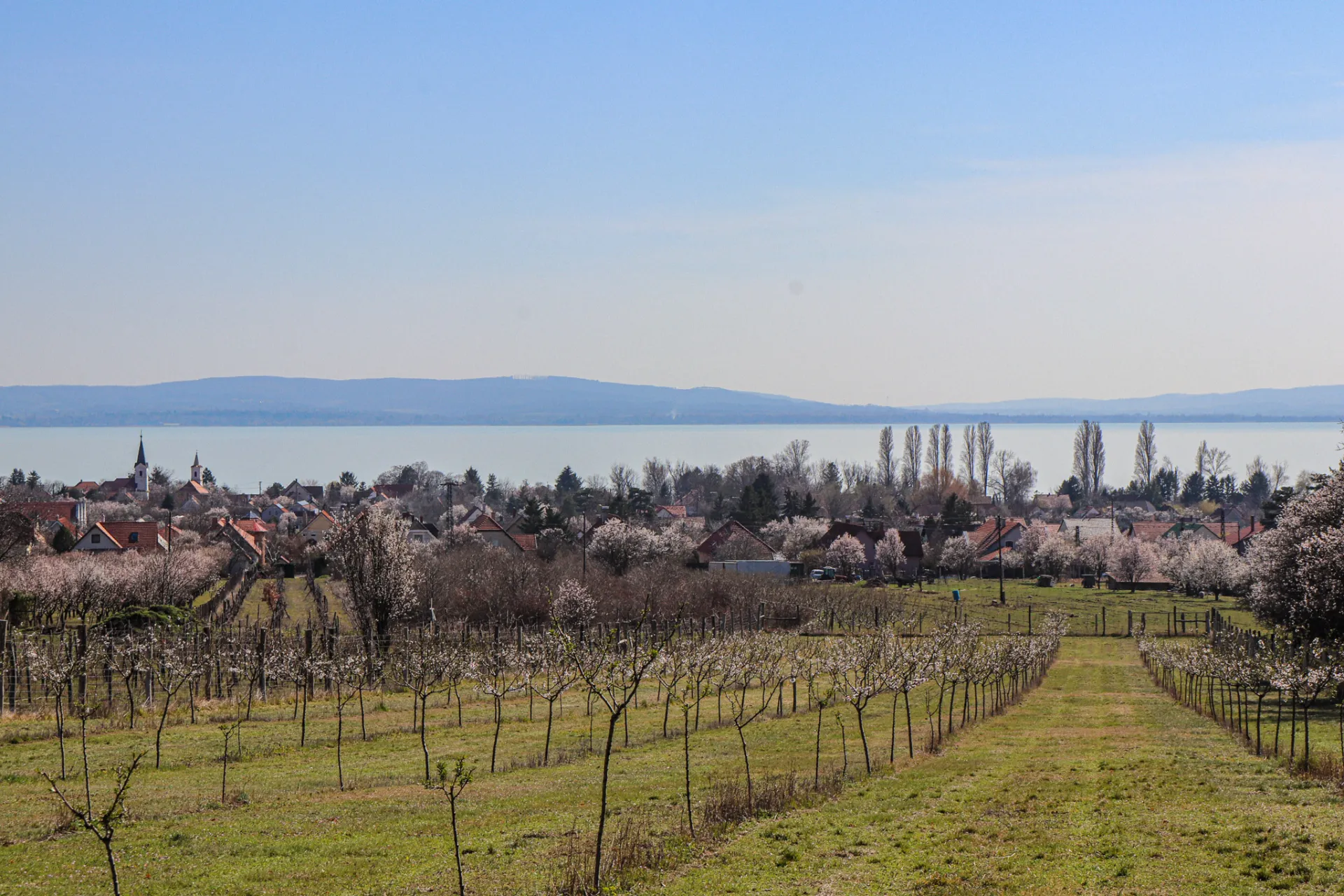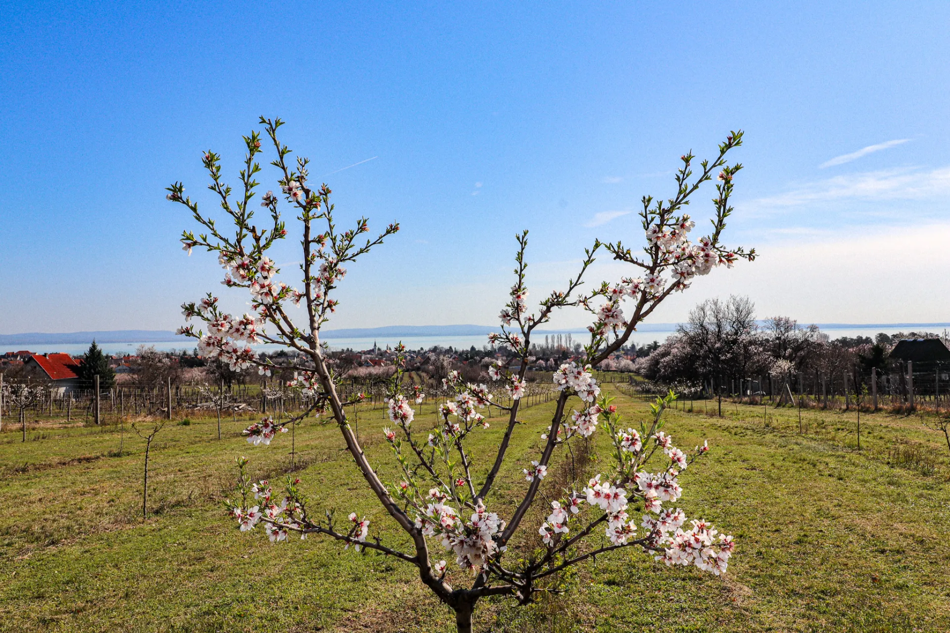 Csodaszép balatoni panoráma, gyönyörűen ápolt telek, fiatal és termő mandulafák, beépítési lehetőség!