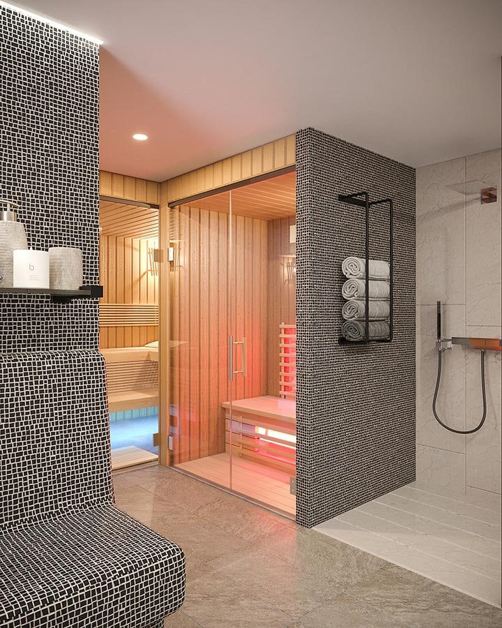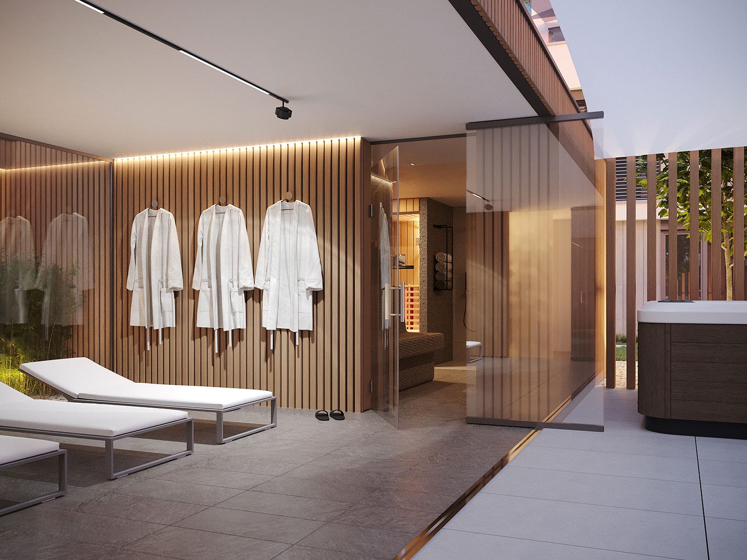- Tágas közösségi terek: grillzóna, játszótér, szaunavilág, gyerekfocipálya, mászófal, napozóterasz