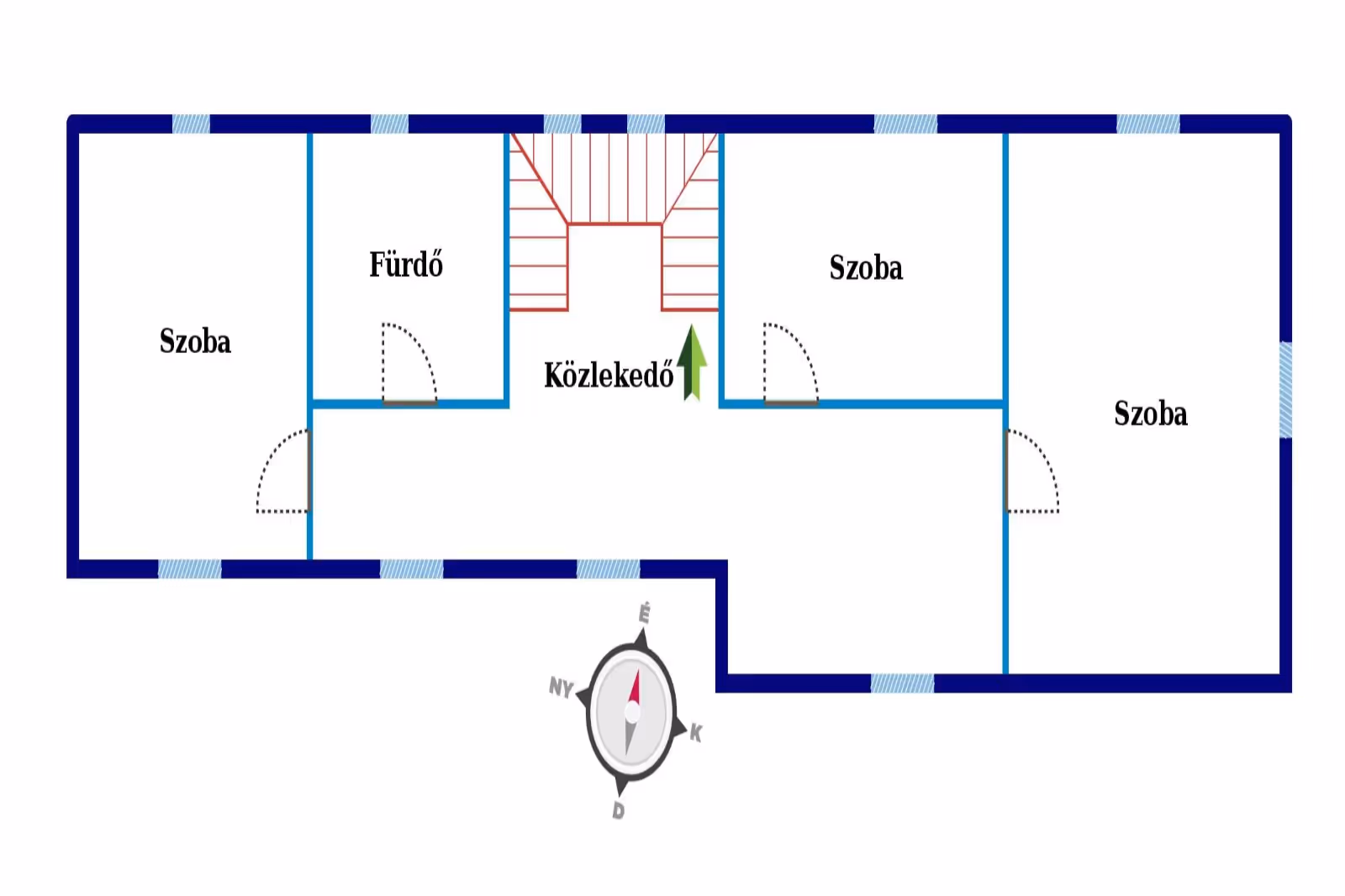 A ház több égtáj felé néző fedett terasszal rendelkezik, közel 50 nm-es nappali-étkező-konyhával, 4 nagyméretű hálószobával, 2 fürdőszobával és egy vendégmosdóval.