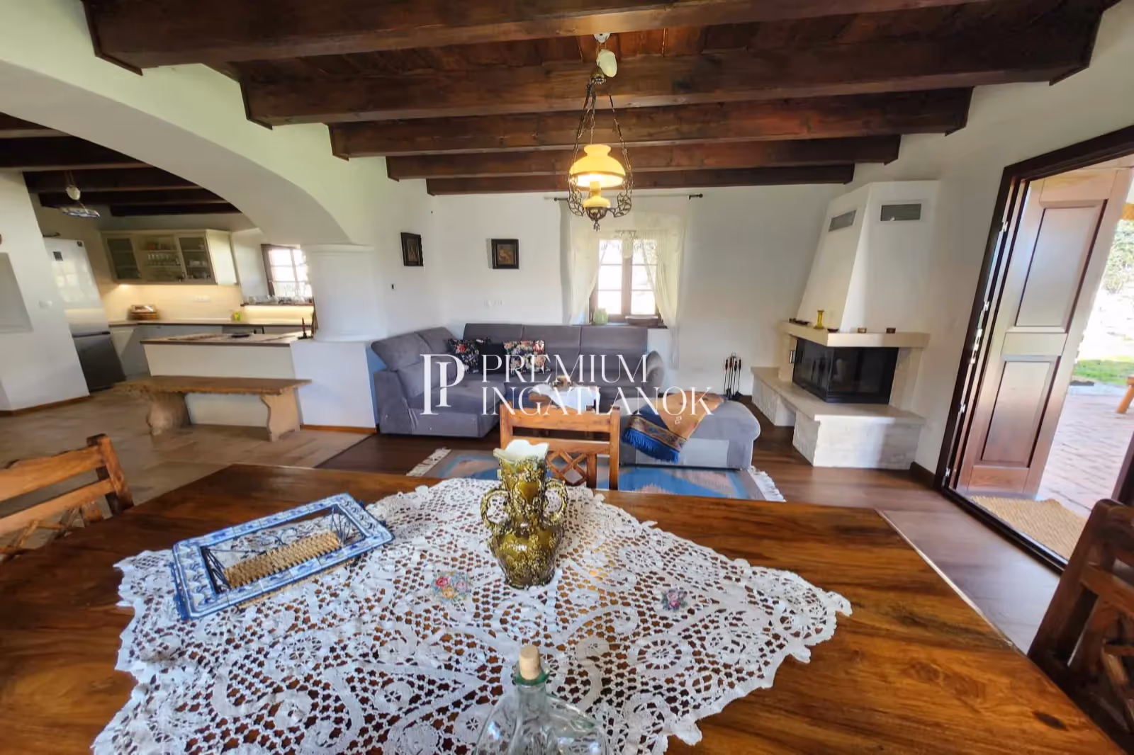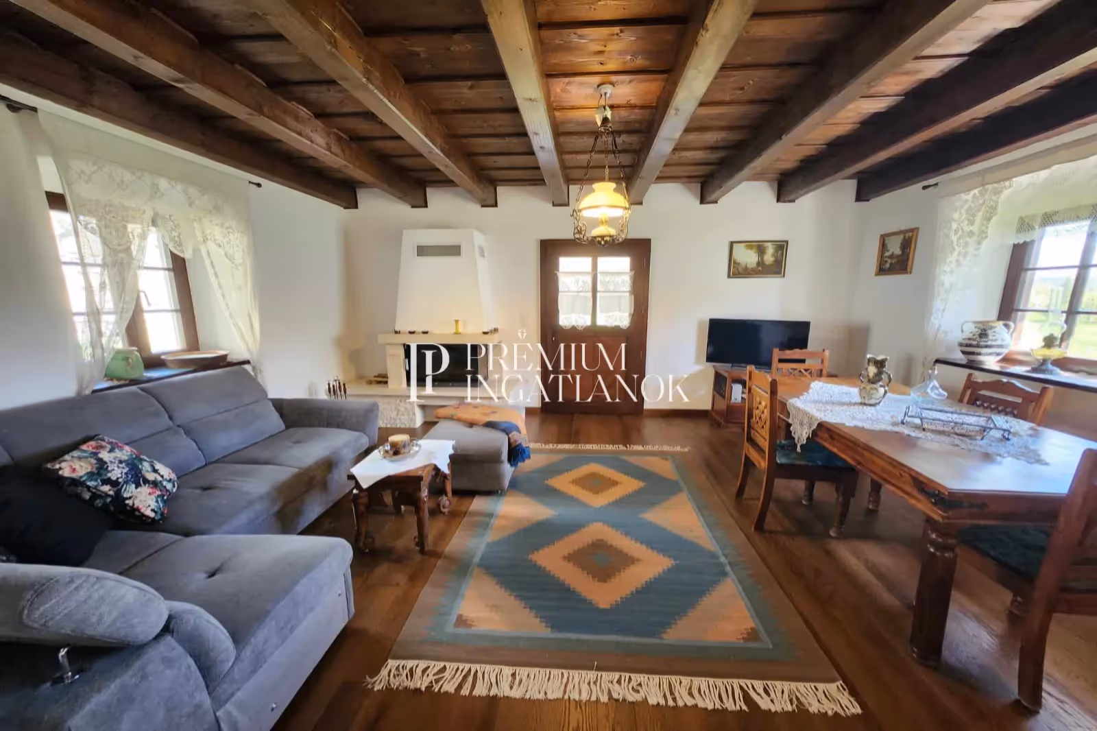 A tradicionális stílusú épület jellegzetességei harmonikusan illeszkednek a környező tájba, így egy igazi idilli otthont teremtve.