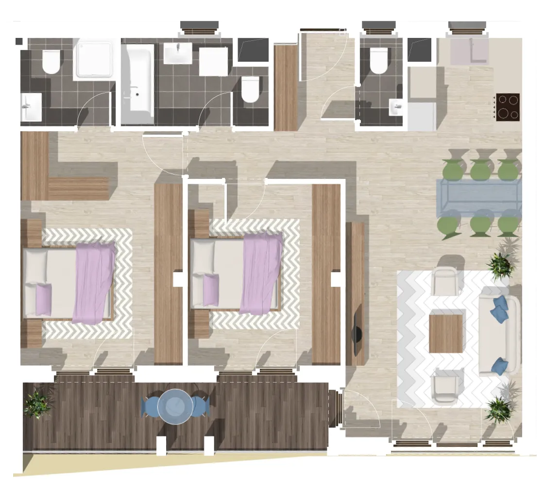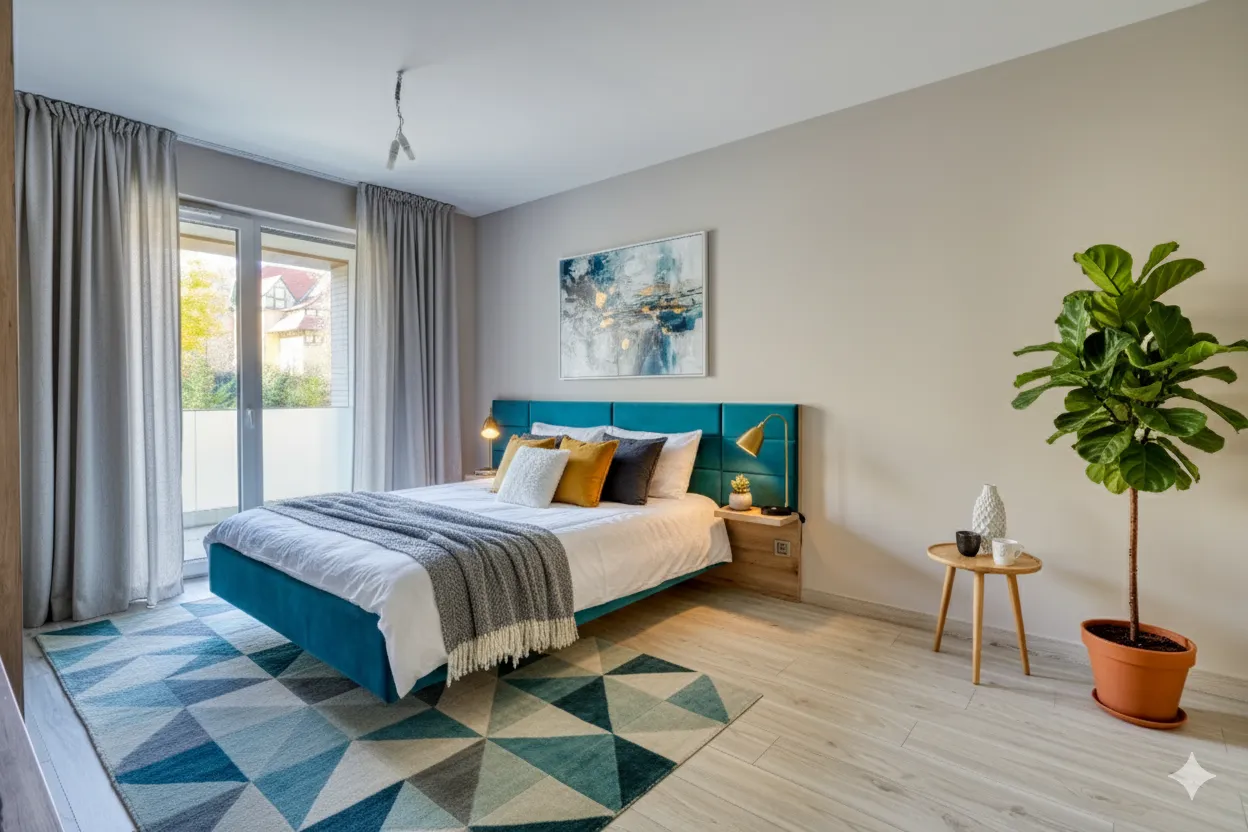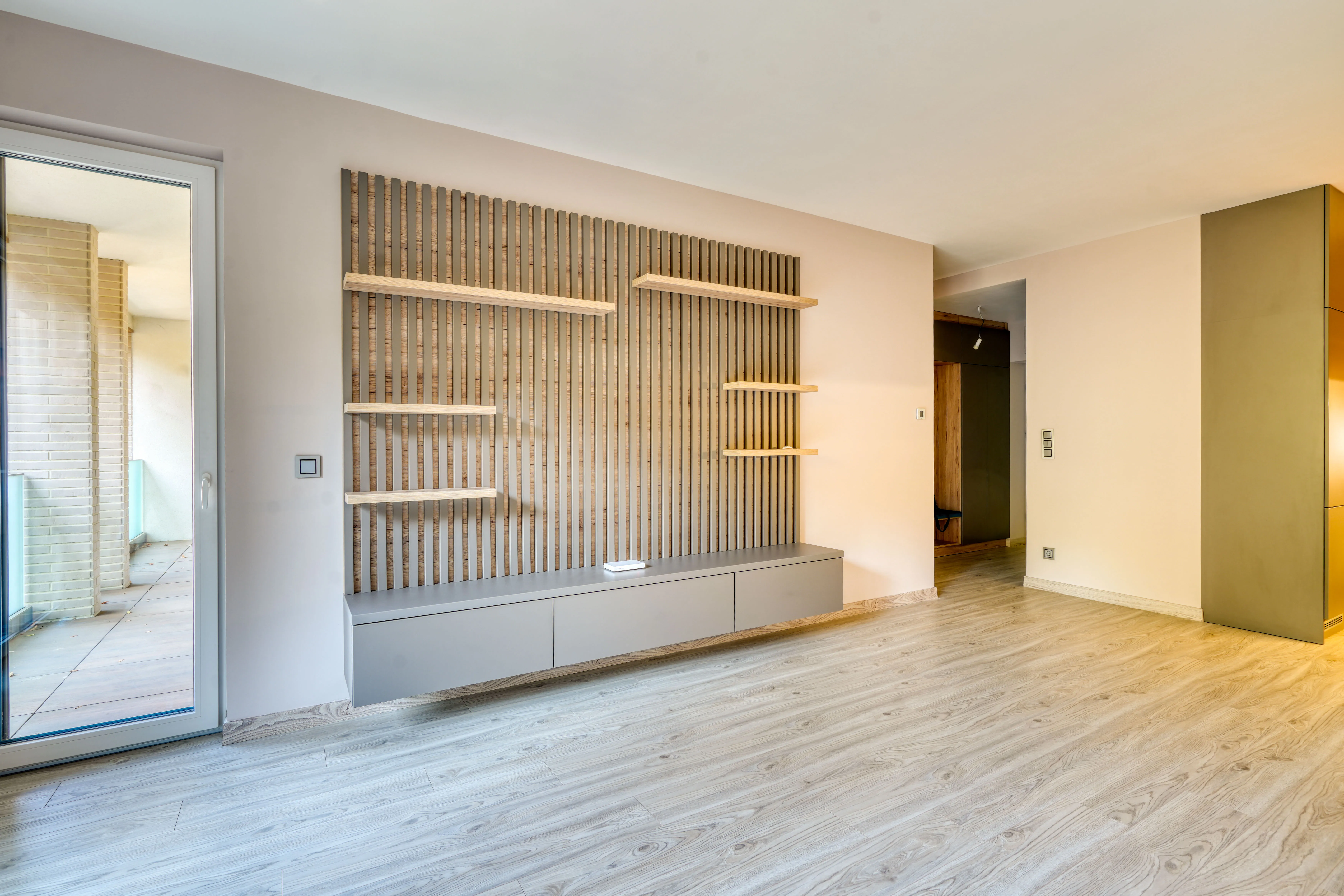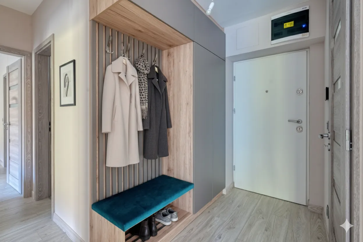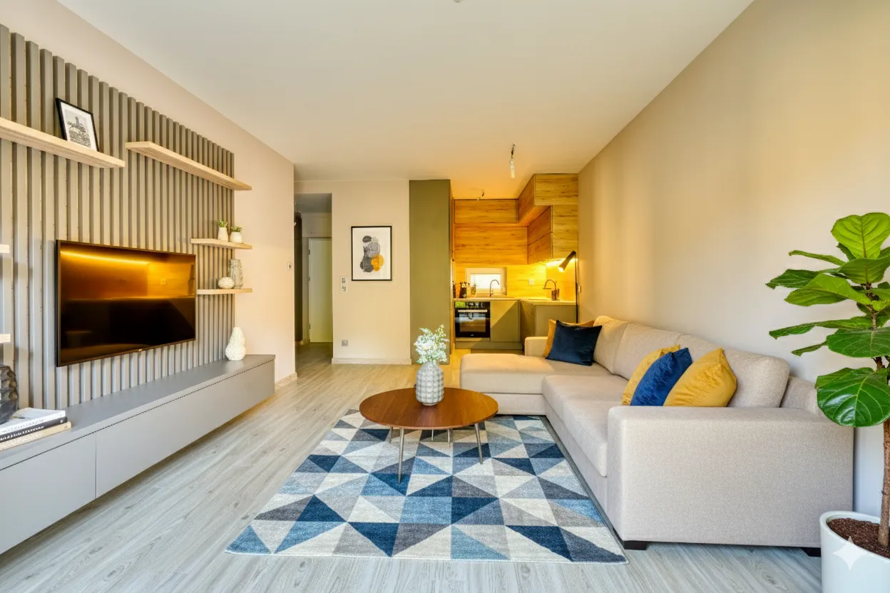 A lakás kialakítása átgondolt és alacsony fenntartású életre szabott: