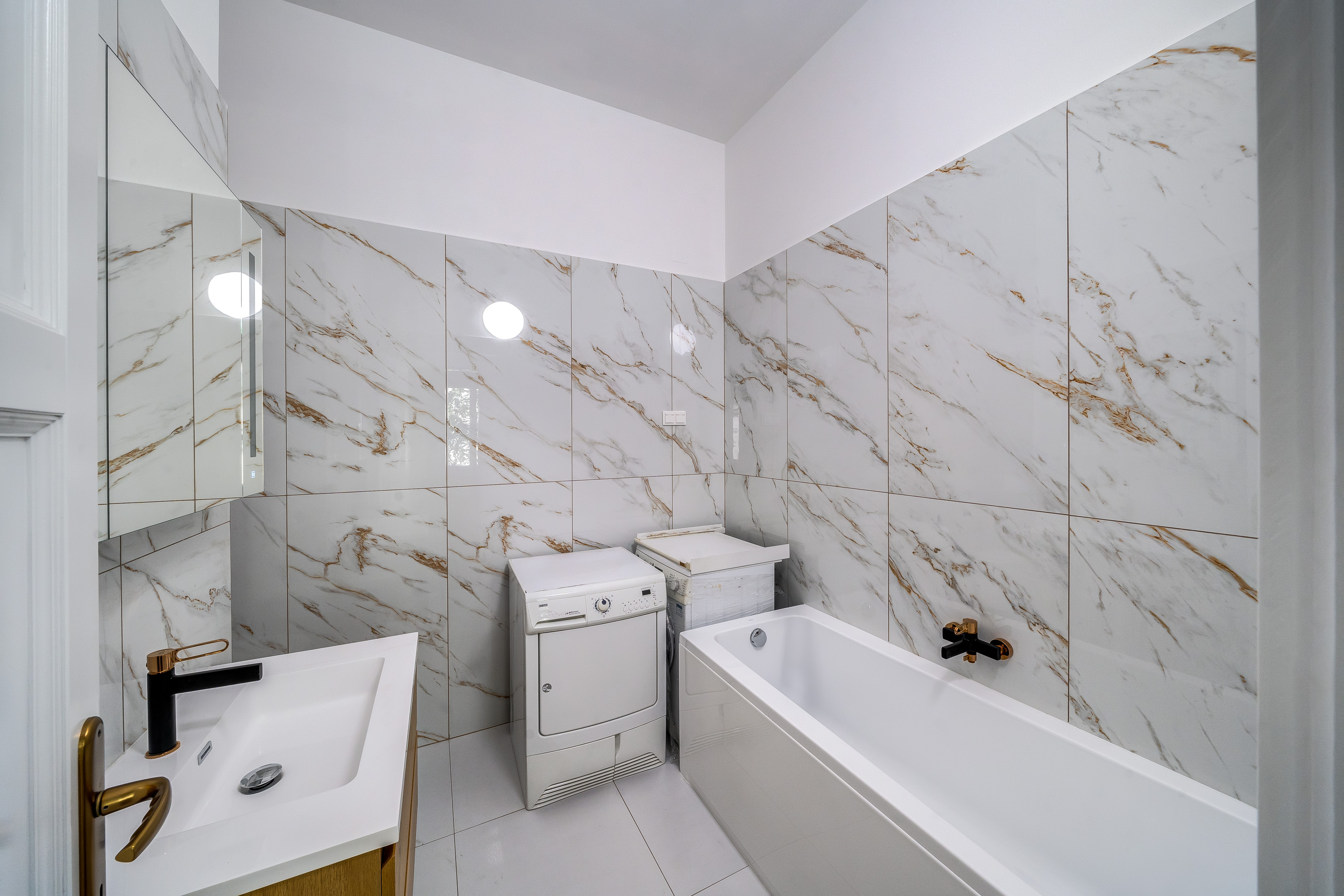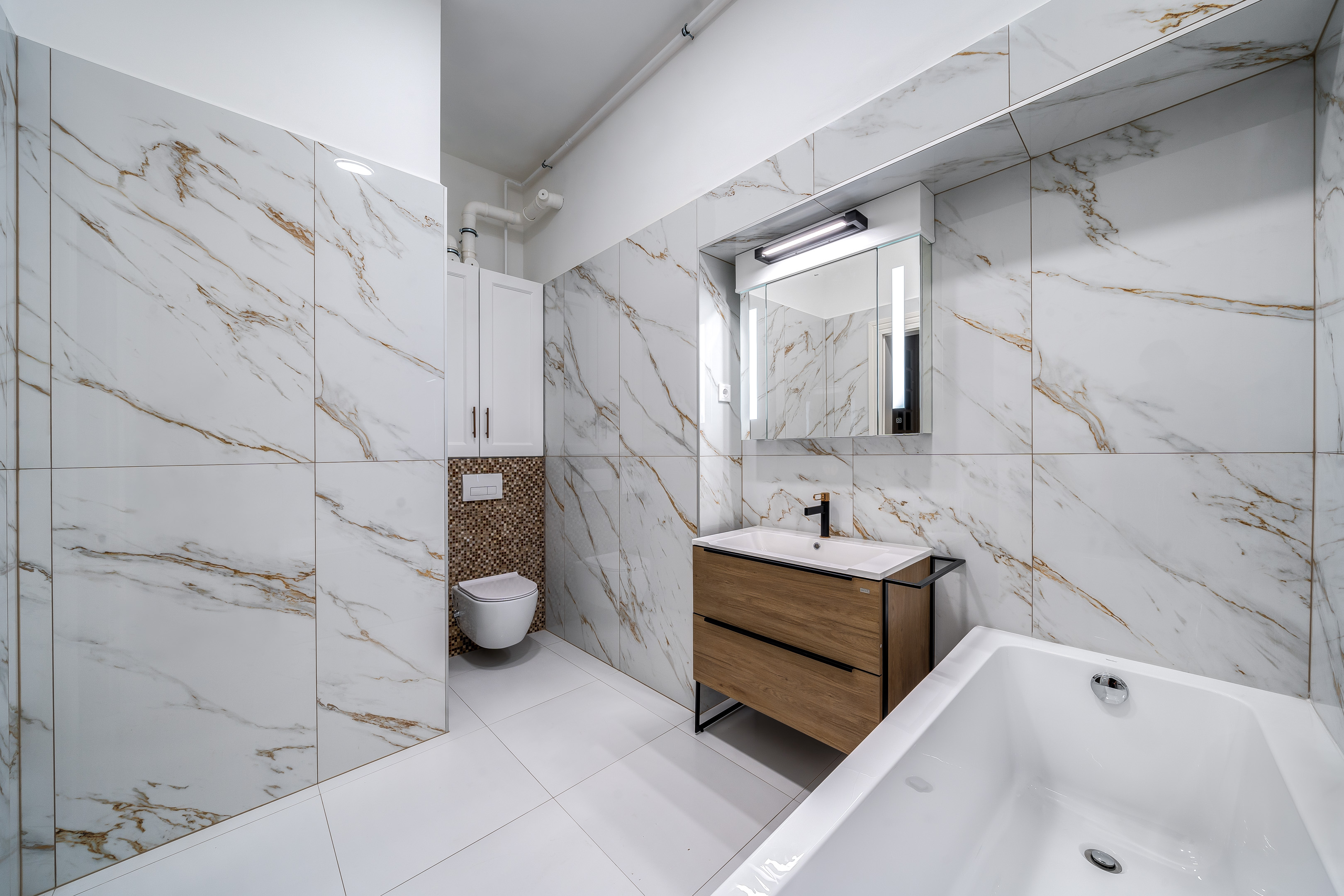 Modern, igényes enteriőr, prémium minőségű burkolatokkal