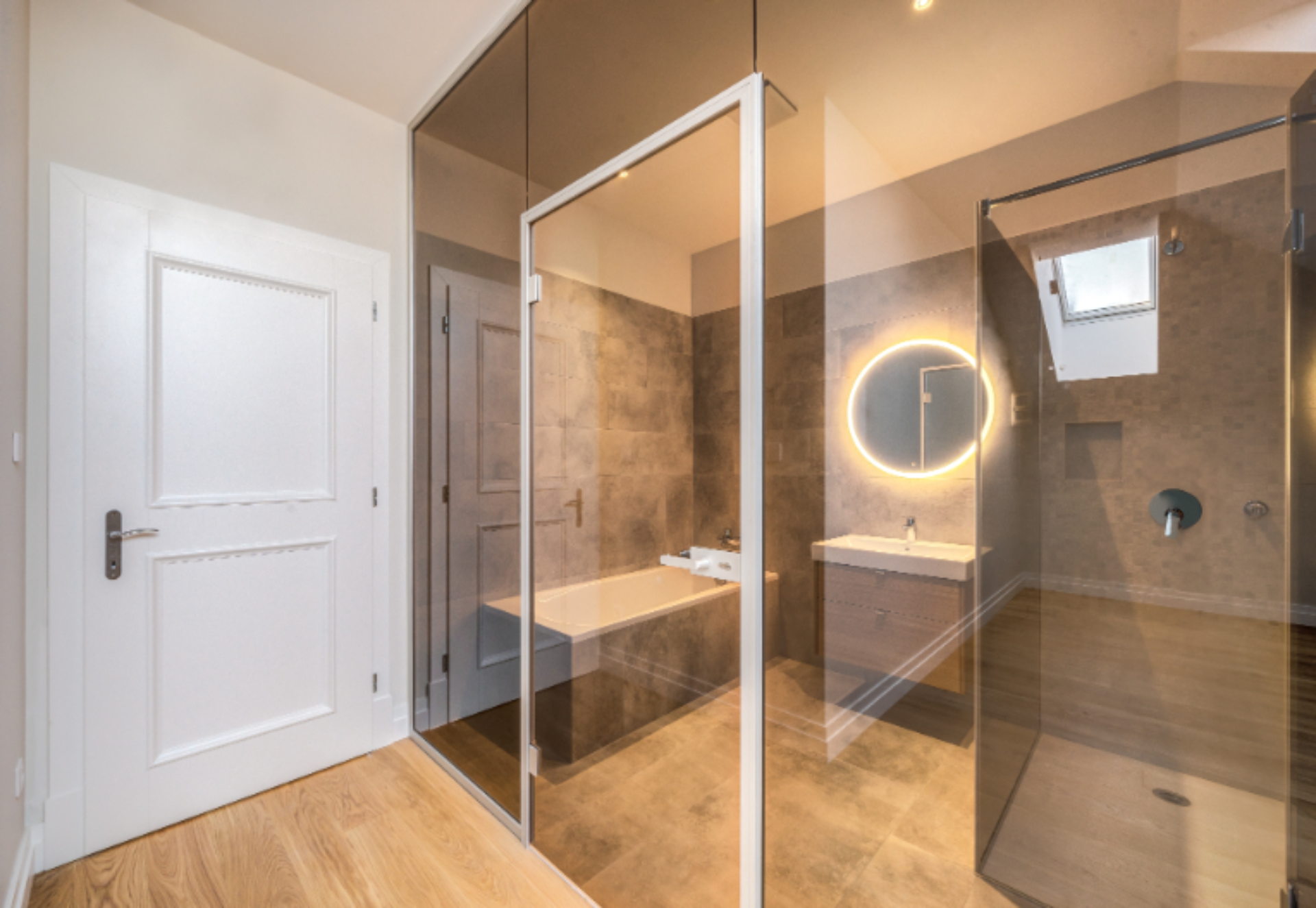 A lakás a Loxone okosotthon rendszerével van felszerelve, így kényelmesen irányíthatja a világítást, a fűtést, a biztonsági rendszert és még sok minden mást, mindössze egy érintéssel, akár távolról is.