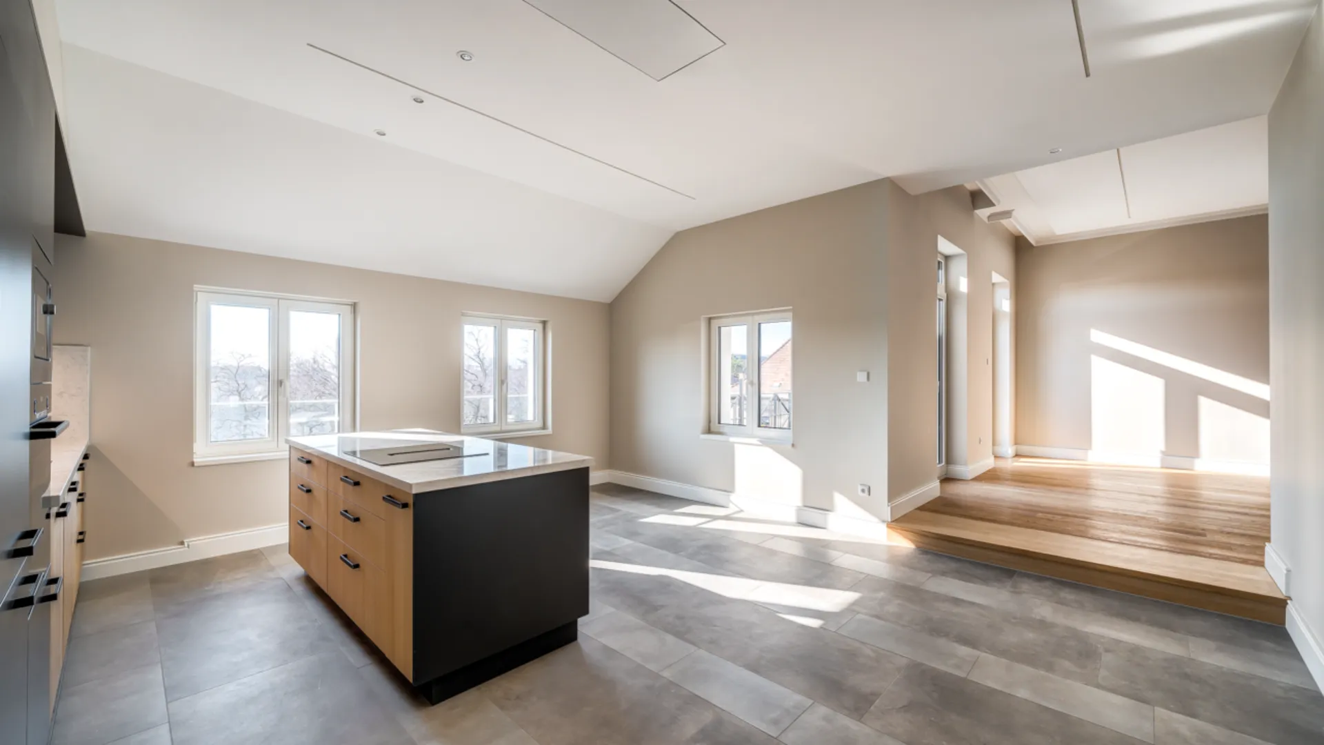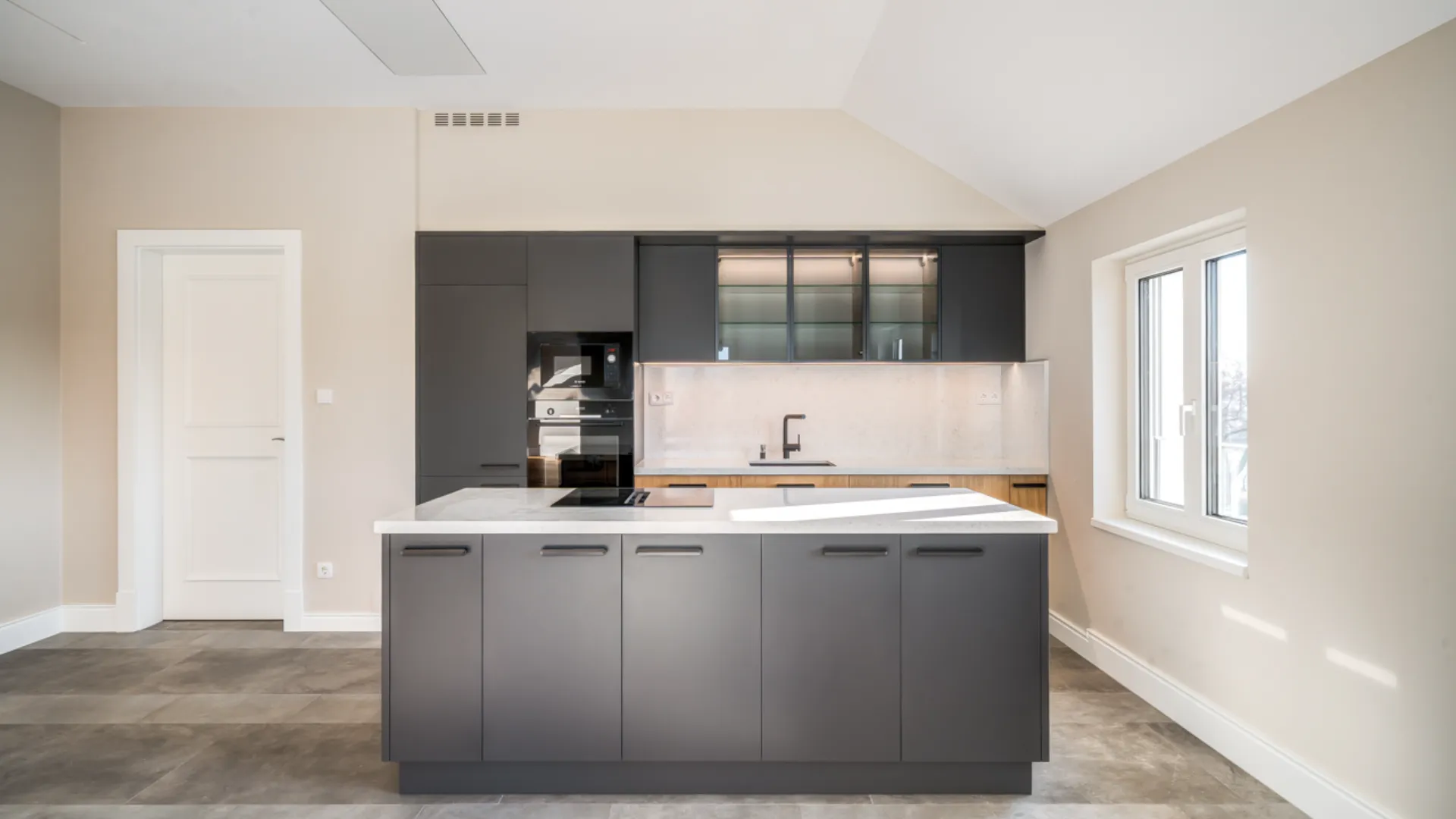 - Kényelmes nappali: Amerikai konyhás nappali, ahol a családi élet és a vendéglátás is élvezetes lehet.