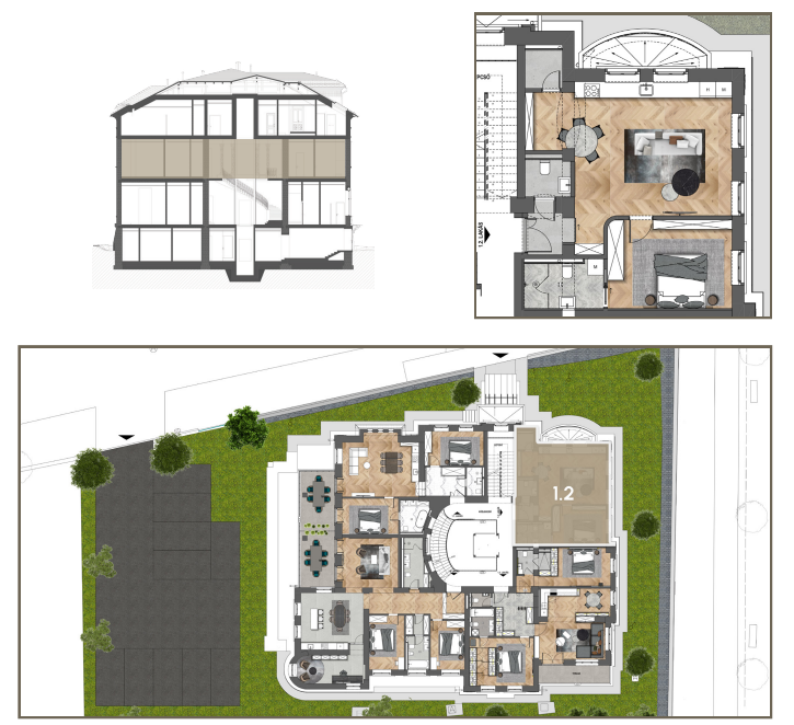 Az ingatlan minden apró részletét gondosan tervezték, hogy a lakók egyszerre élvezhessék a történelmi atmoszférát és a korszerű technológiákat.