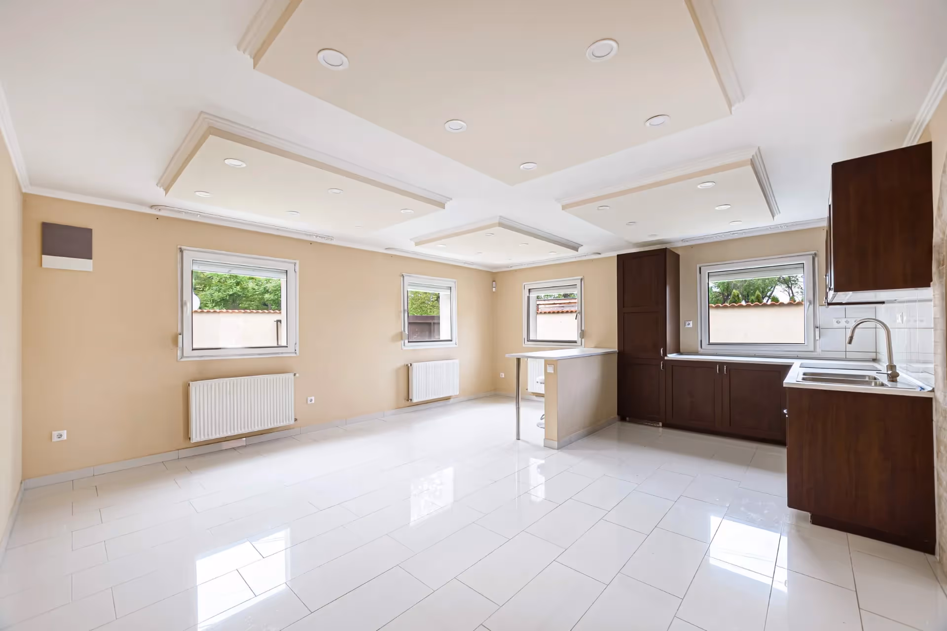 Tágas otthon: 360 m²-es lakótér, 3 szinten (félszuterén + földszint + emelet), összesen 7 szobával, 2 nappalival 2 konyhával, rugalmasan alakítható belső elrendezéssel.