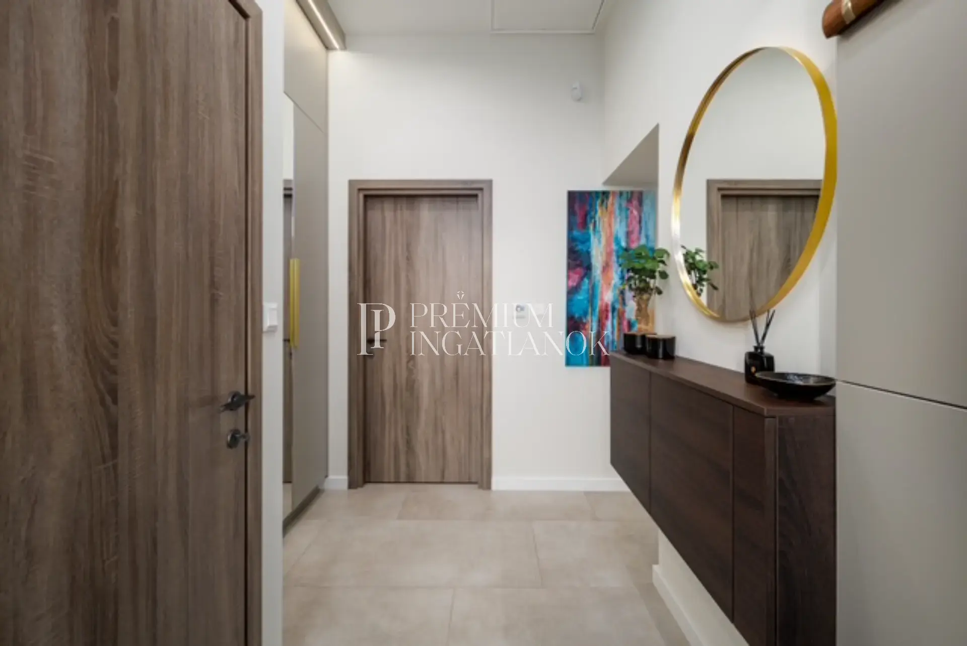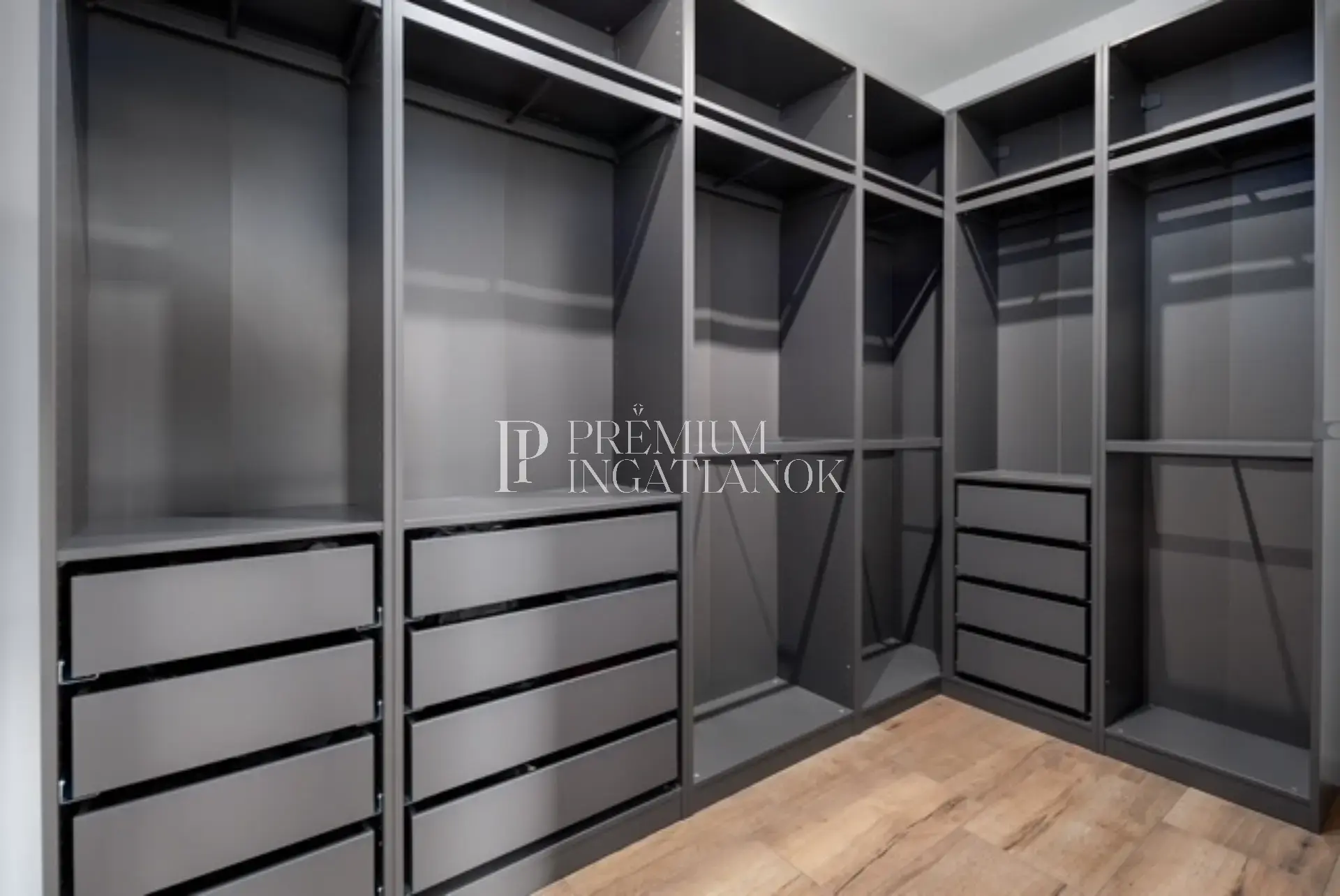 A műszaki tartalom a prémium életvitelhez igazodik: hőszivattyús rendszer mennyezeti hűtéssel, padlófűtéssel, kiegészítő hűtő-fűtő klímákkal, 6 kW-os napelemrendszerrel. Az AA++ energetikai besorolás nemcsak presztízs, hanem hosszú távon kiszámítható, hatékony fenntartás is. Az okosotthon rendszer tovább erősíti a kényelmet és a kontrollt – ott, ahol igazán számít.