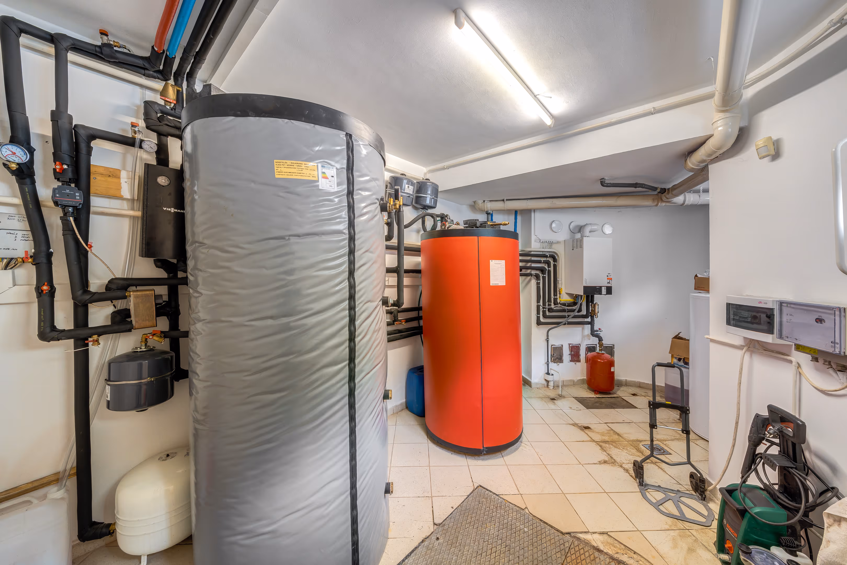 A házban padló- és radiátoros fűtés működik, melynek hőmérséklete egyénileg szabályozható.A házban hat darab klímaberendezés található, a fűtési rendszer 2022-ben teljes körűen korszerűsítésre került: új Viessmann típusú gázkazán, melynek működését (vízmelegítését) hat napkollektor segíti, ami a fűtési szezonon kívül, nyáron, a medence vízét melegíti. A használati melegvizet egy 750 literes HMW tároló biztosítja. A műanyag nyílászárók thermo üvegezéssel készültek, a belső felújítások során (2011) a szobák új burkolatot kaptak, a fürdőszobákban pedig modern zuhanykabinokat építettek be.