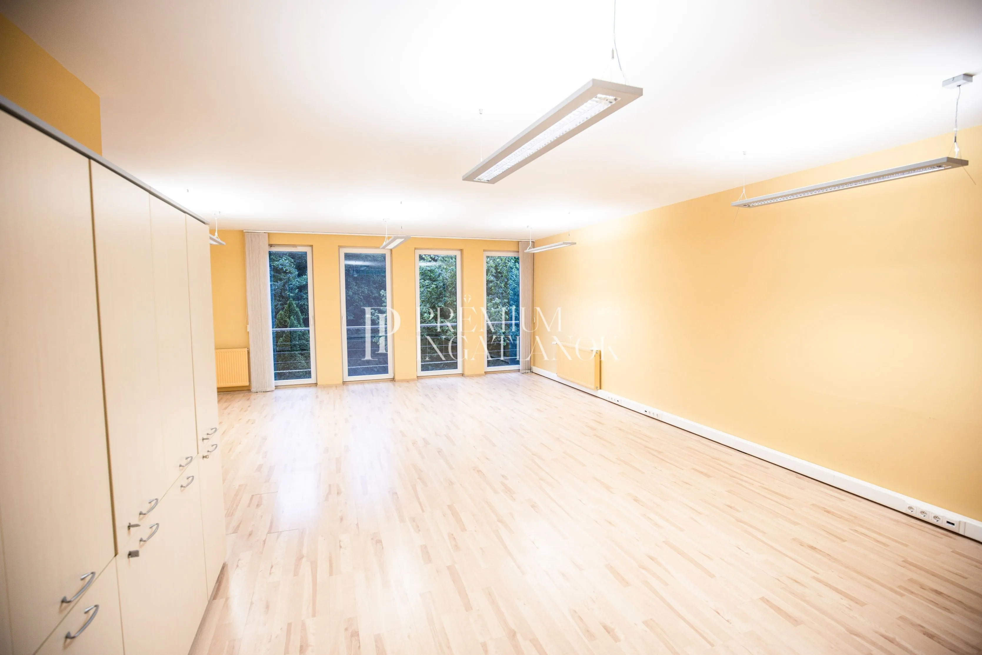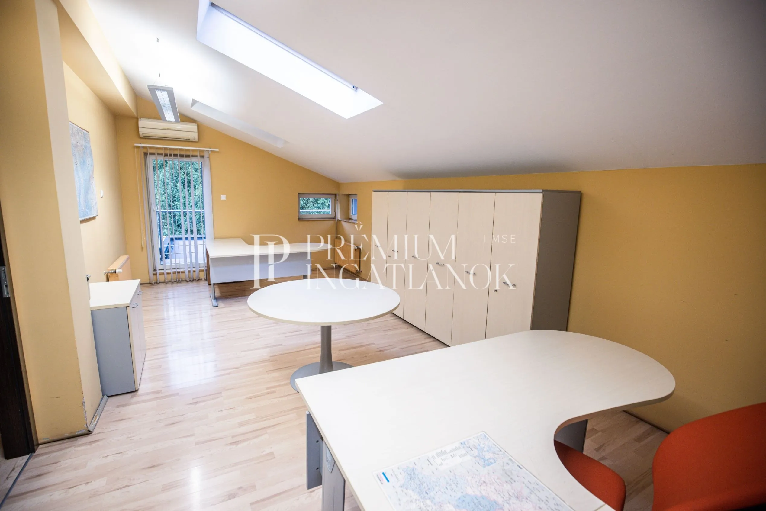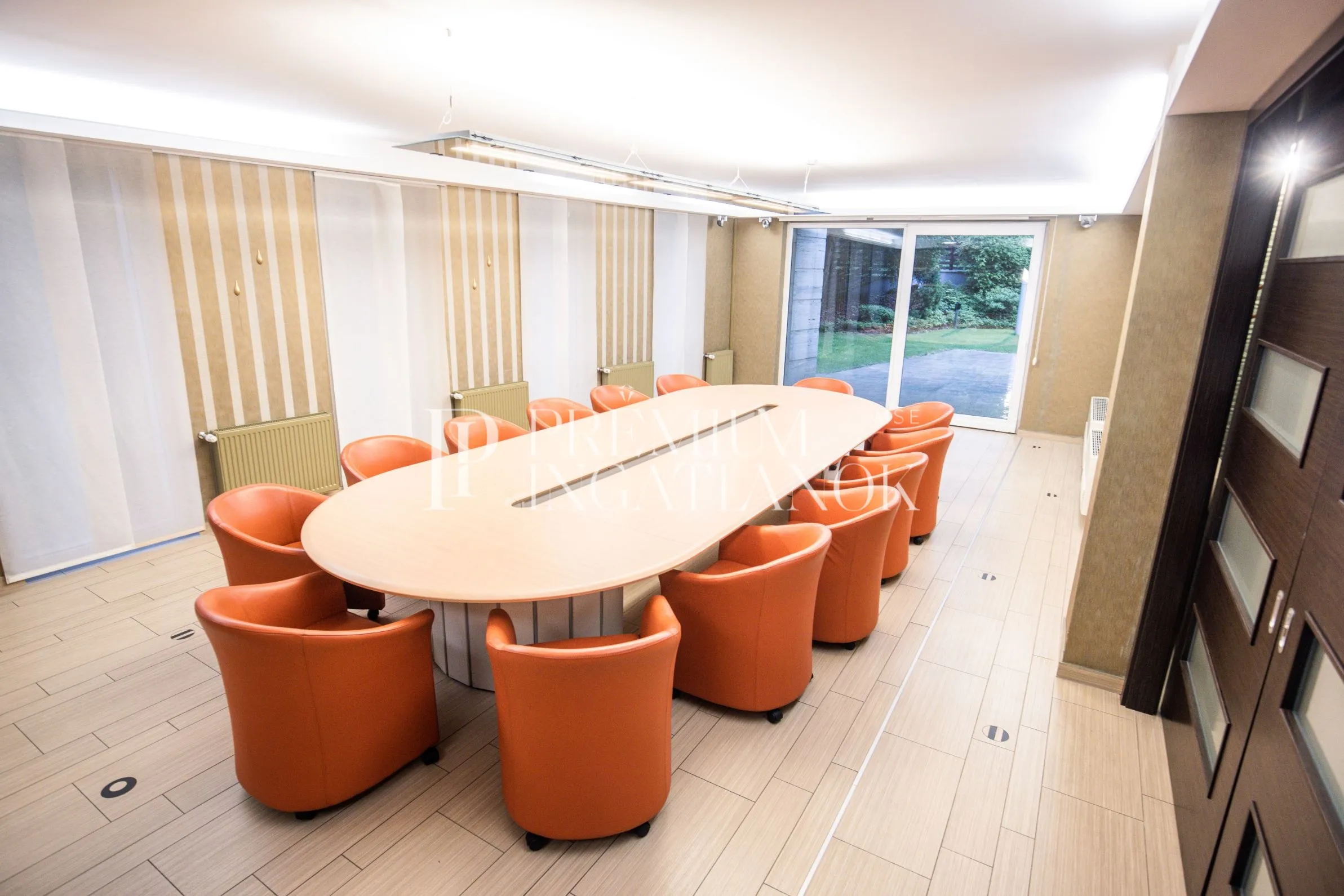 Az ingatlan egy 1804 m2 területű, gyönyörűen füvesített, dísznövényekkel tarkított telken található, melyen 1050 m2 hasznos alapterületű, 3-emeletes, mélygarázssal rendelkező épület helyezkedik el. Az épület kiválóan alkalmas irodaépületként, klinikaként, hivatalként vagy lakó-rezidenciaként történő üzemeltetéshez. Nyáron az ingatlant körülvevő erdő szép fáinak sűrű lombjai közül élénk madárcsicsergés és a természet egyéb megnyugtató hangjai hallhatók, míg télen a hóesés gyönyörű hófehér tájjá varázsol mindent.