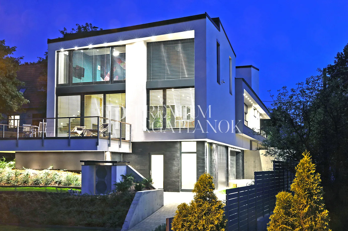 Budapest, 2.kerületben Budaligeten , a Budai -hegység lábánál eladó 2018-as építésű, háromszintes ház, közepes lejtésű telken, mely tökéletes panorámát kínál a Budai hegyekre.