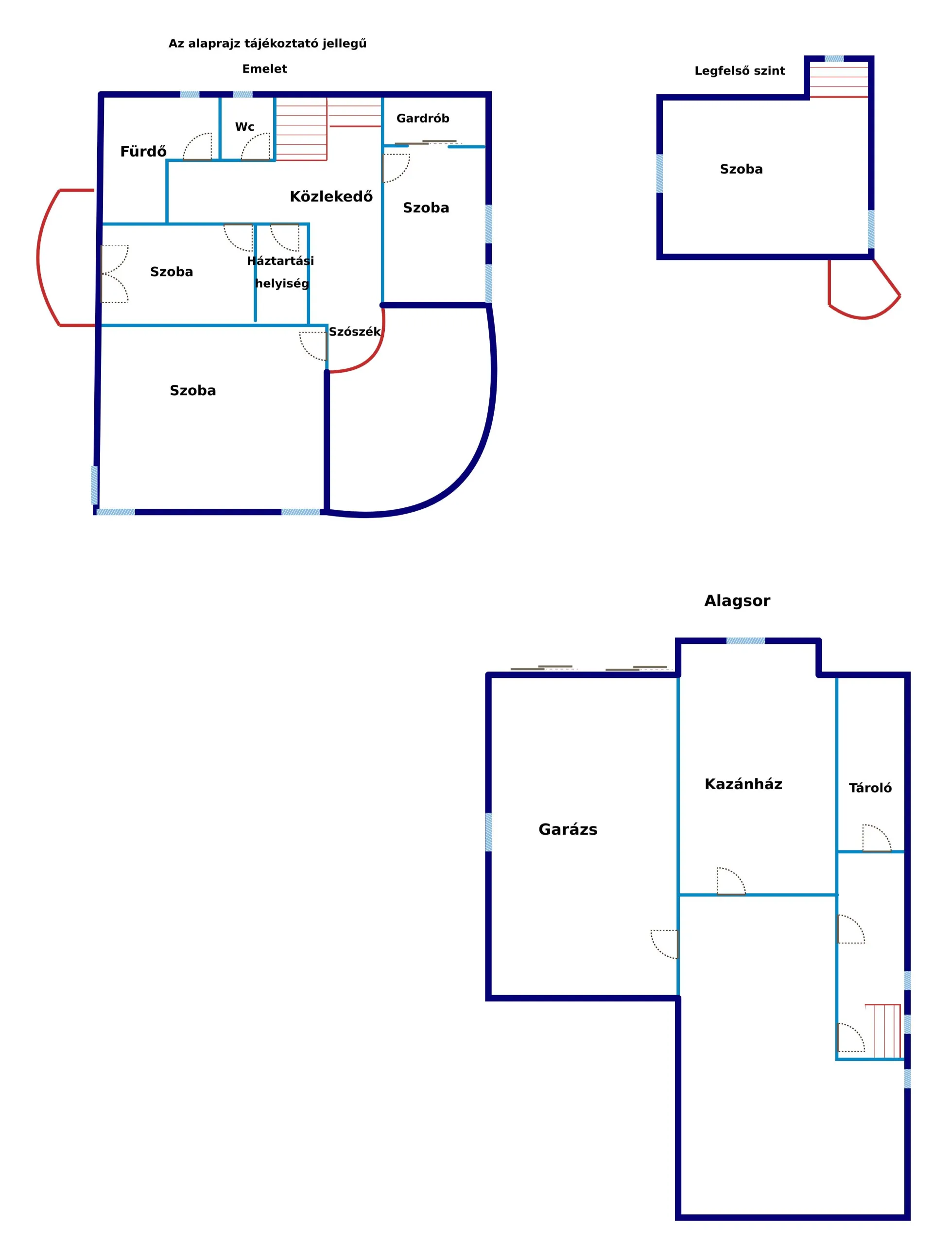 Az emeleti 127 négyzetméteres két szinten 5 külön bejáratú szoba, gardrób, mosókonyha, fürdő mellékhelyiséggel, és külön mellékhelyiség, valamint teraszok kerültek kialakításra.