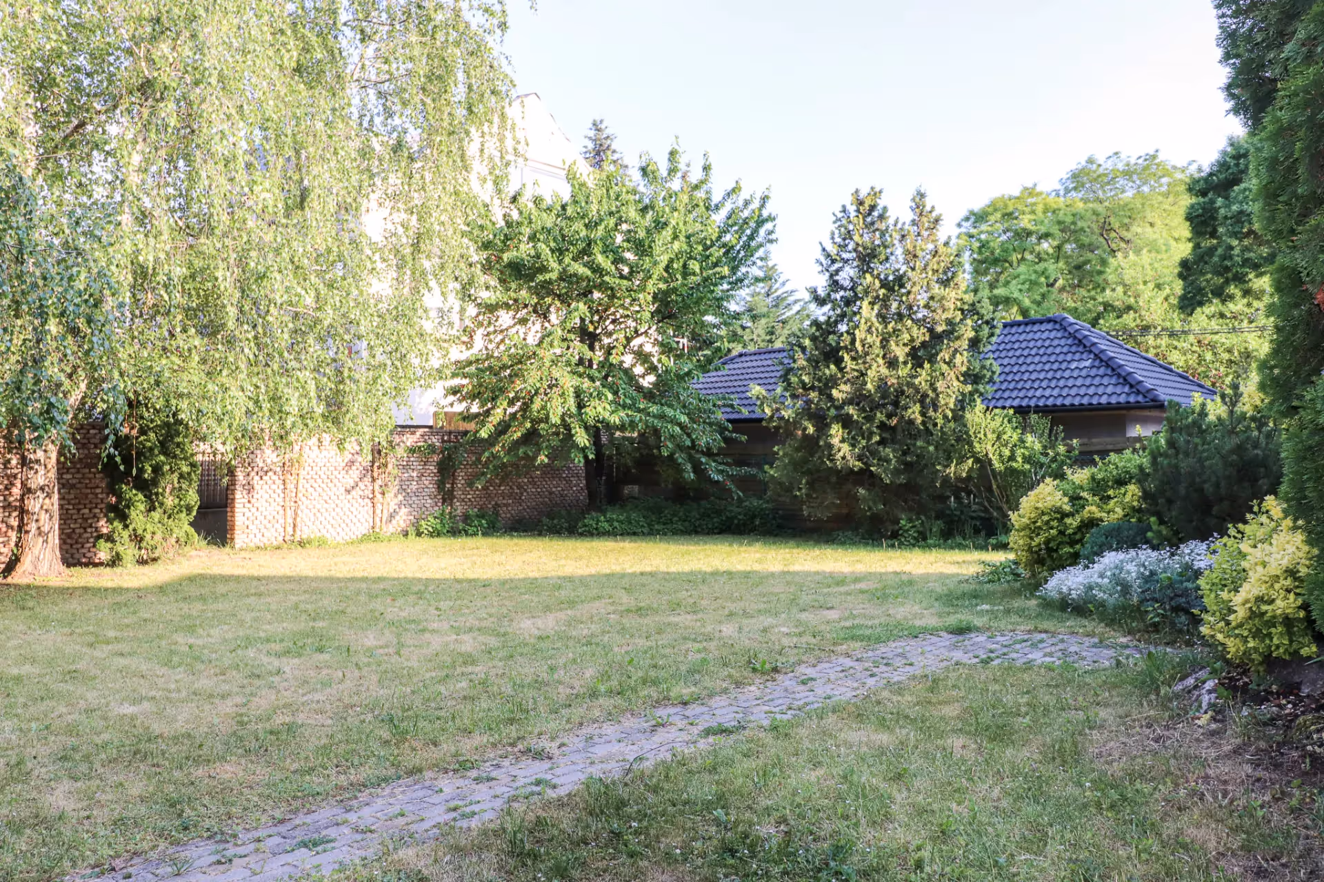 A telek 910 négyzetméter, gondozott, automata öntözőrendszerrel ellátott, sziklakerttel, különleges amerikai tulipánfával, nyárfával, cseresznyefával, japán birssel leylandi ciprussal beültetett, a kiváló elrendezésnek köszönhetően jól használható, akár egy nagyméretű medence is kialakítható.