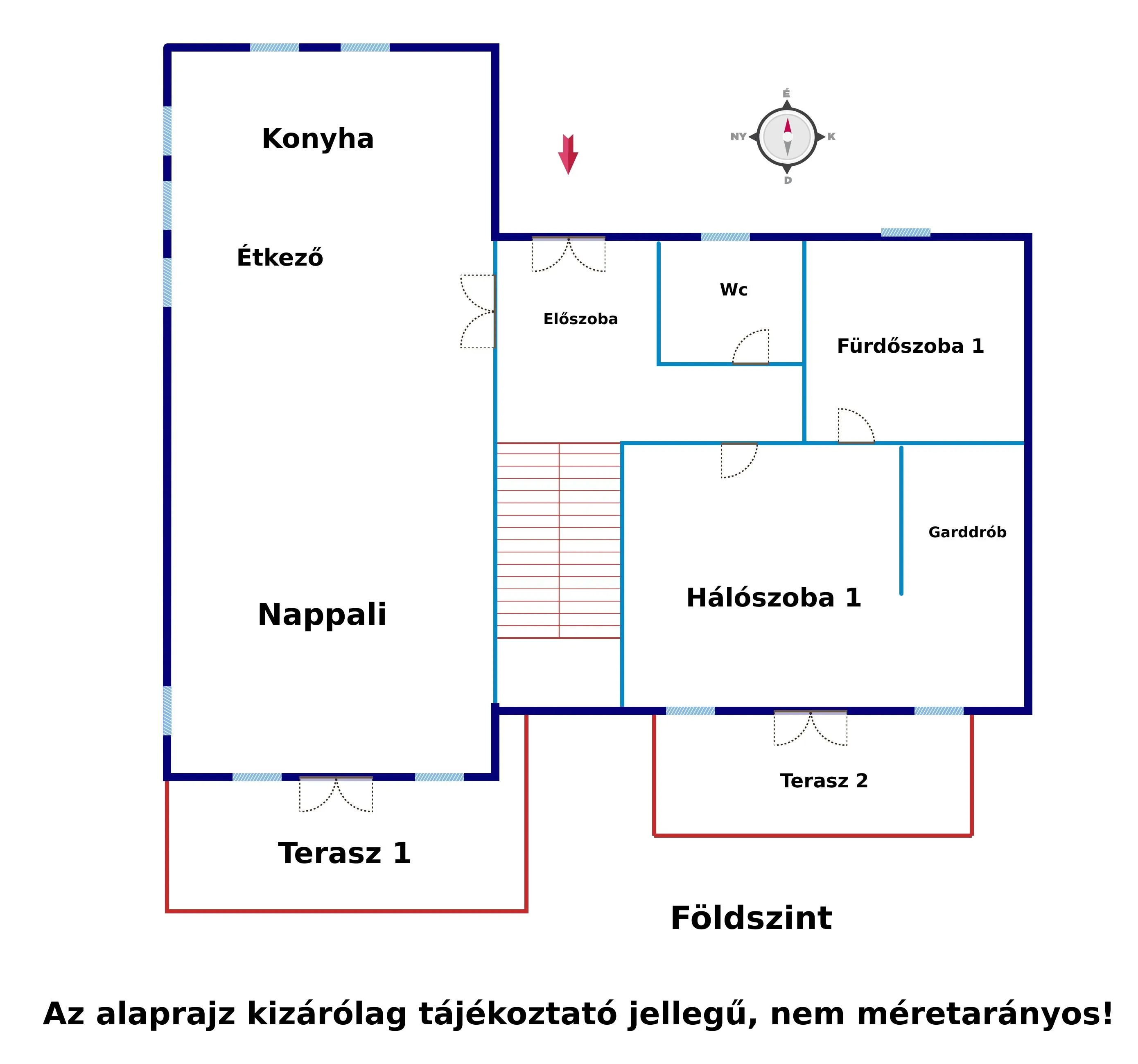 • Földszint: Panorámás nappali- étkező-konyha bioetanol kandallóval, egy hálószoba saját kertkapcsolattal, fürdőszoba és külön vizes helyiség.