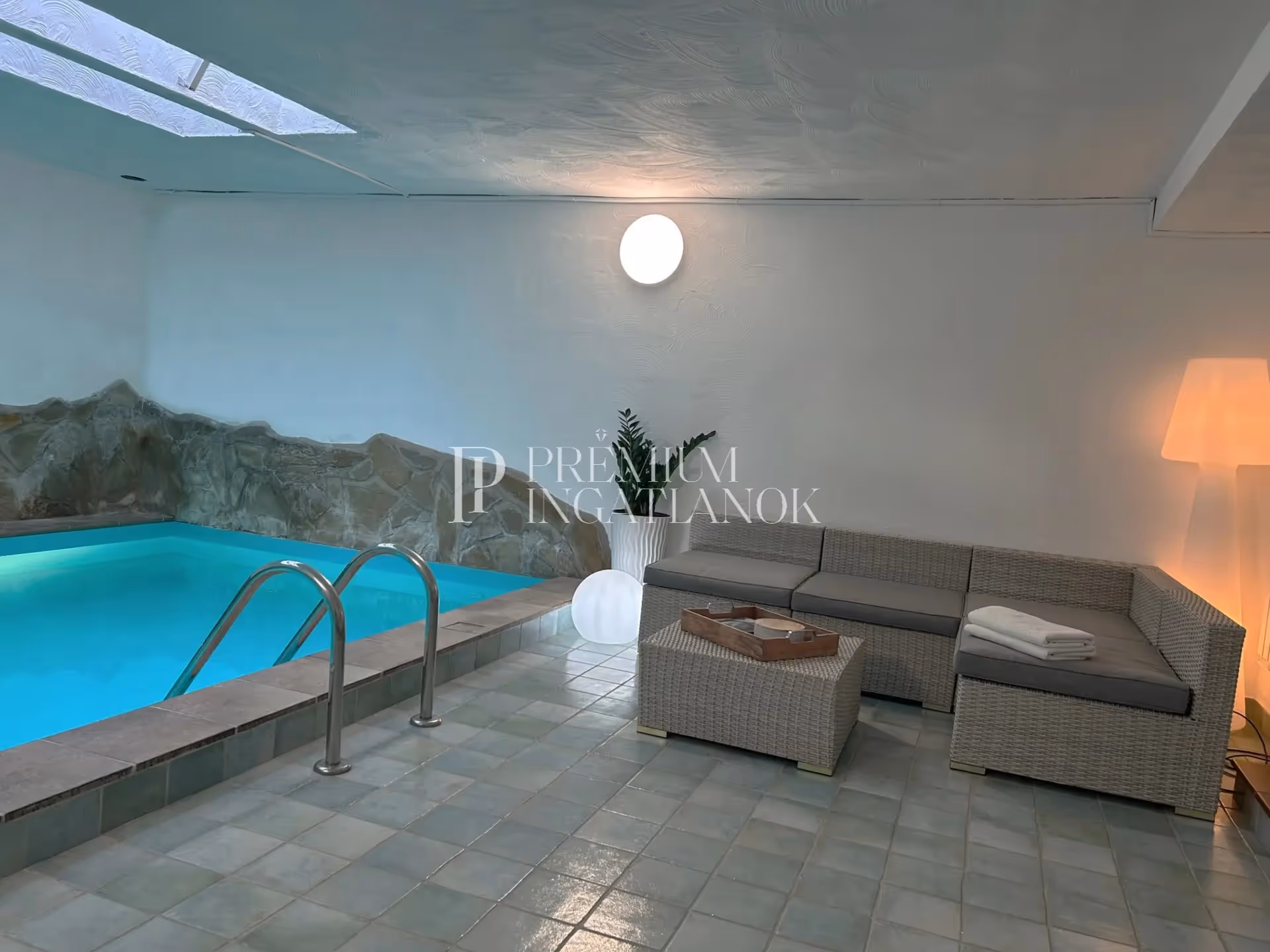 A ház csodálatos állapotban van, szinte új. Az enteriőr egyenesen magávalragadó. Csak minőségi anyagok és egyedileg gyártott olasz bútorok lettek hozzá kiválasztva és beépítve. Továbbá a tulajdonos a régi Tuscan stílust összegyúrta fiatalos, dizájnos modern megoldásokkal amivel olyan milliőt varázsol, ami beszippantja a házba érkezőket és egy kellemes nyugodt, meleg érzéssel tölt el mindenkit. A ház napelemmel van ellátva, ami miatt a rezsi szinte nullára csökkent és a fedett gépkocsibeállóhoz ki lett alakítva egy elektromos autó töltőegység is. A otthon melegentartásáról padlófűtés továbbá a mennyezet hűtés/fűtés gondoskodik. Egy hatalmas szoba, egy nagy terekkel rendelkező nappali, egy fürdő és egy tágas konyha került kialakításra a földszinten. Az emelet három nagyméretű szobára és egy nagy fürdőszobára lett osztva. Az alagsorban egy konditerem helyezkedett el, továbbá itt található a szauna és a medence is. A medence ellenáramoltatóval ellátott és fűthető.