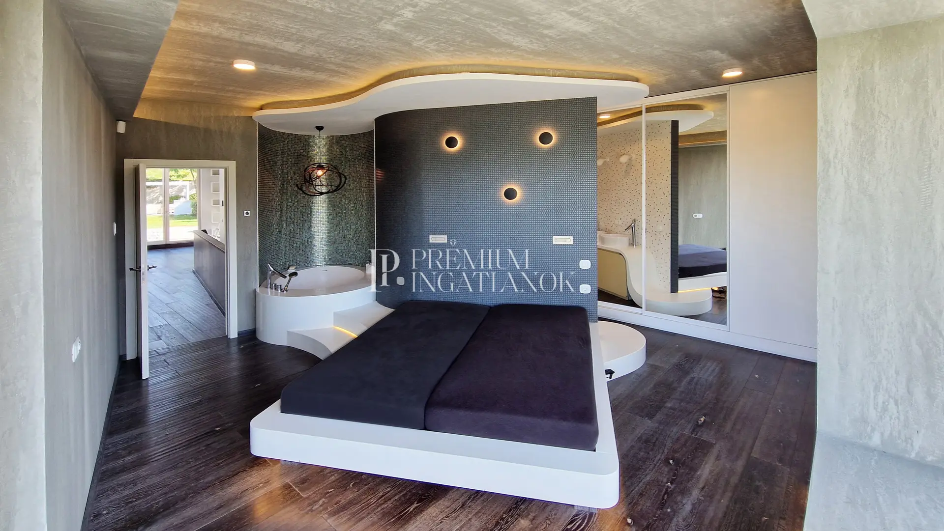 Figyelmébe ajánlom Aranyhegyen, hatalmas telken ezt a modern, nappali + 4 hálószobás, luxus kivitelű családi házat ahonnan a felkelő és a lenyugvó napot is a teraszáról csodálhatja.