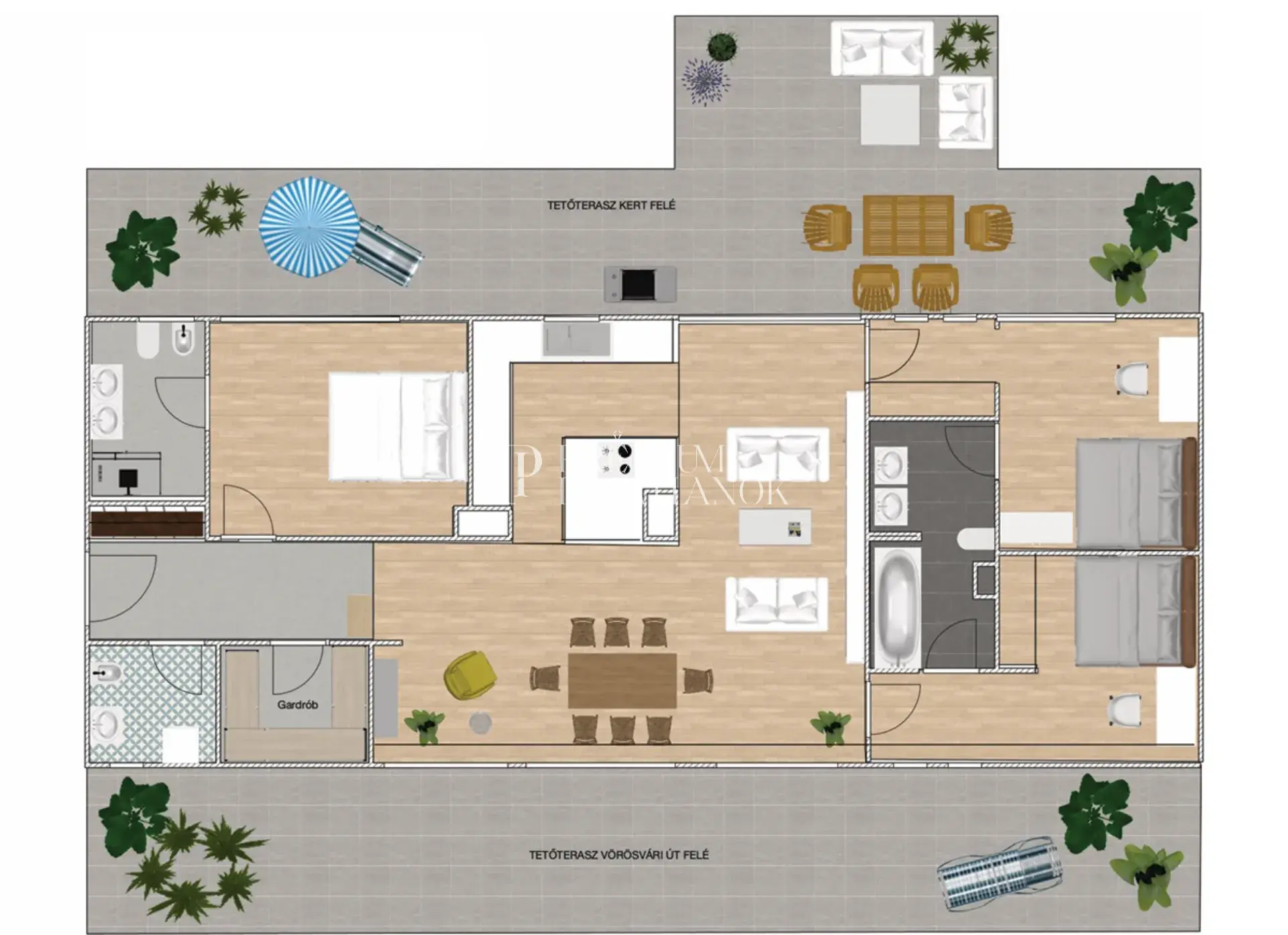 104 m² panorámás terasz – a penthouse lelke