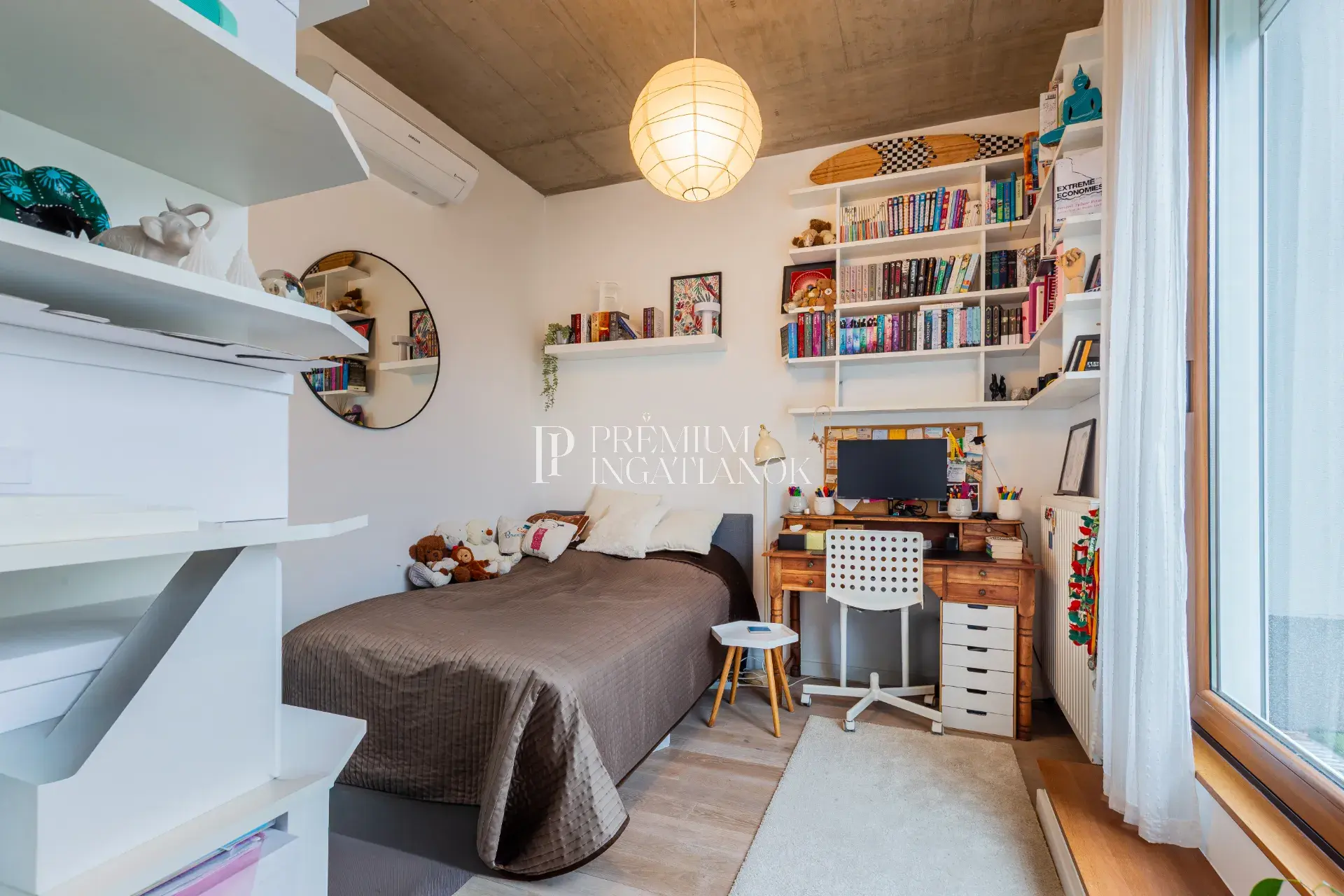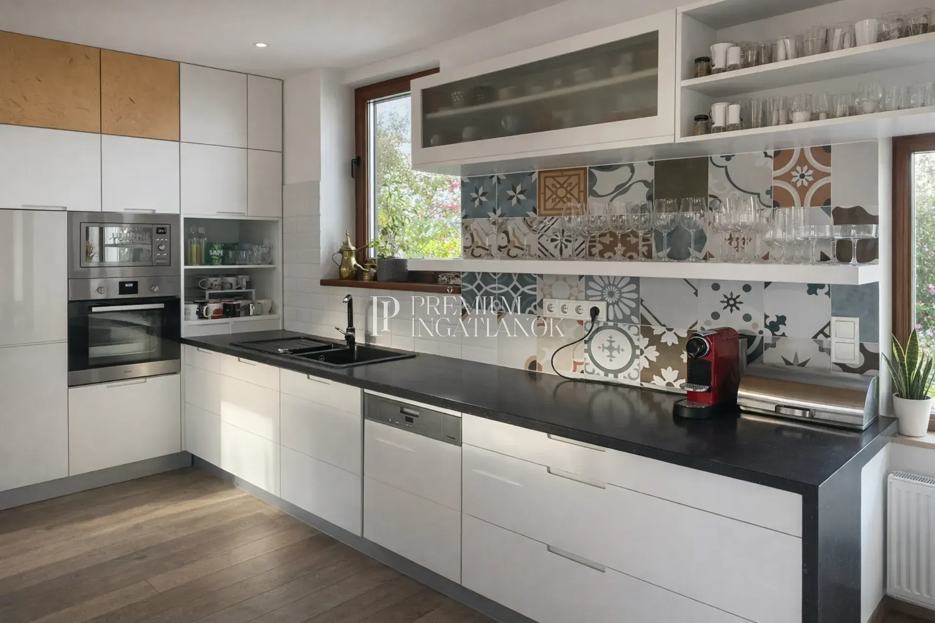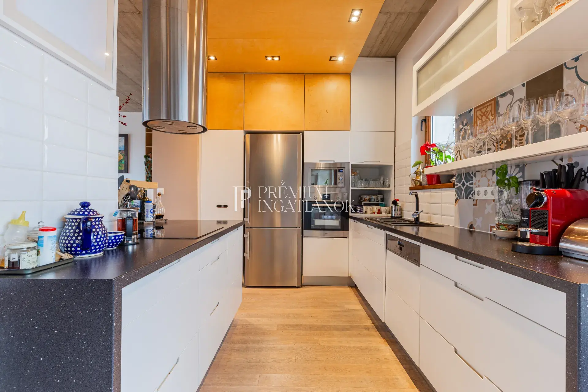 a 3 méteres belmagasság, a körbefutó üvegfelületek és az amerikai konyhás nappali együttese tágas, világos, légies életteret hoz létre. Ez az a ritka ingatlan, ahová az ember ösztönösen „megérkezik”.