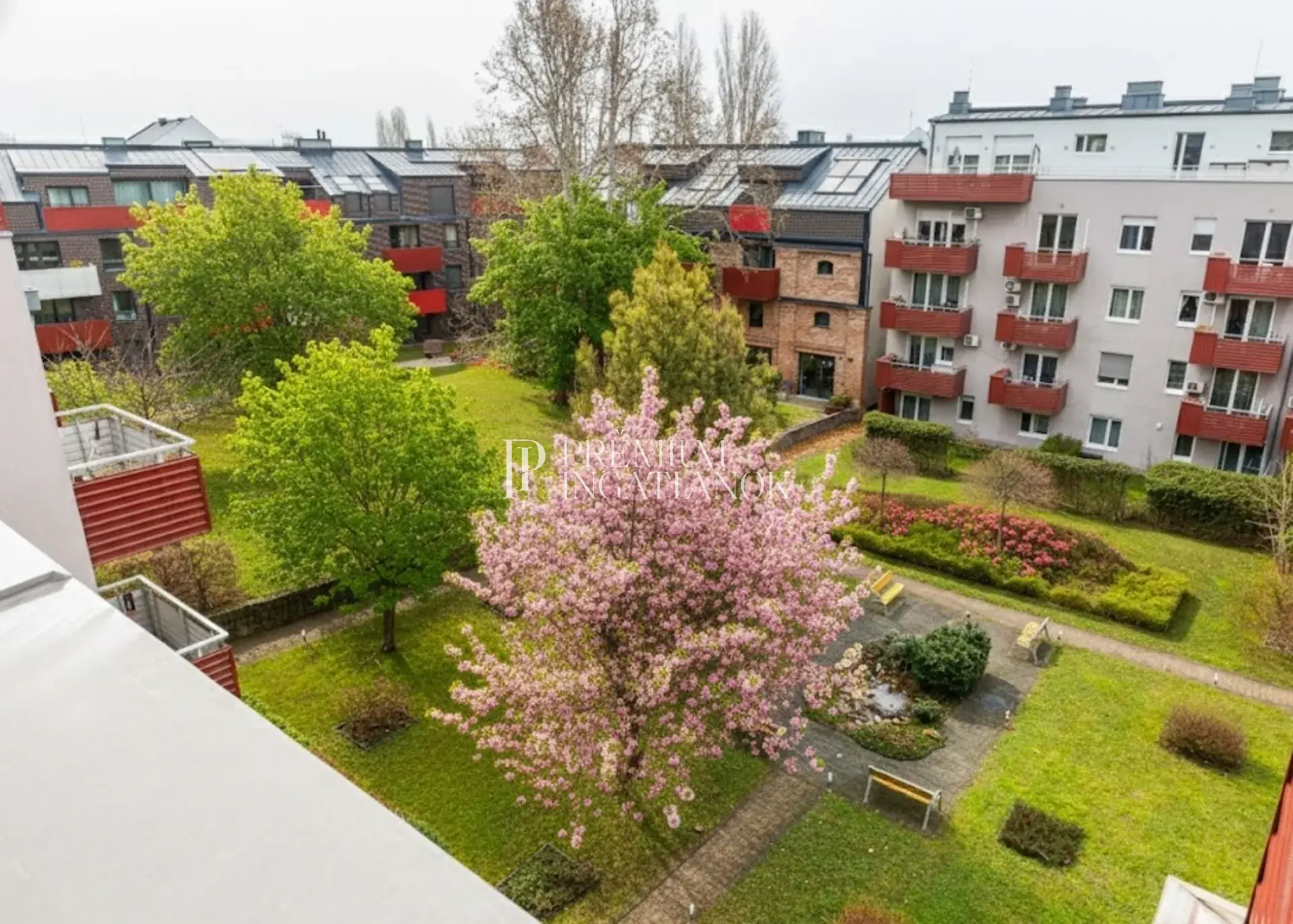 A kilátás csendes belső kertre nyílik – intim, nyugodt környezetet biztosít, messze a városi zajtól.