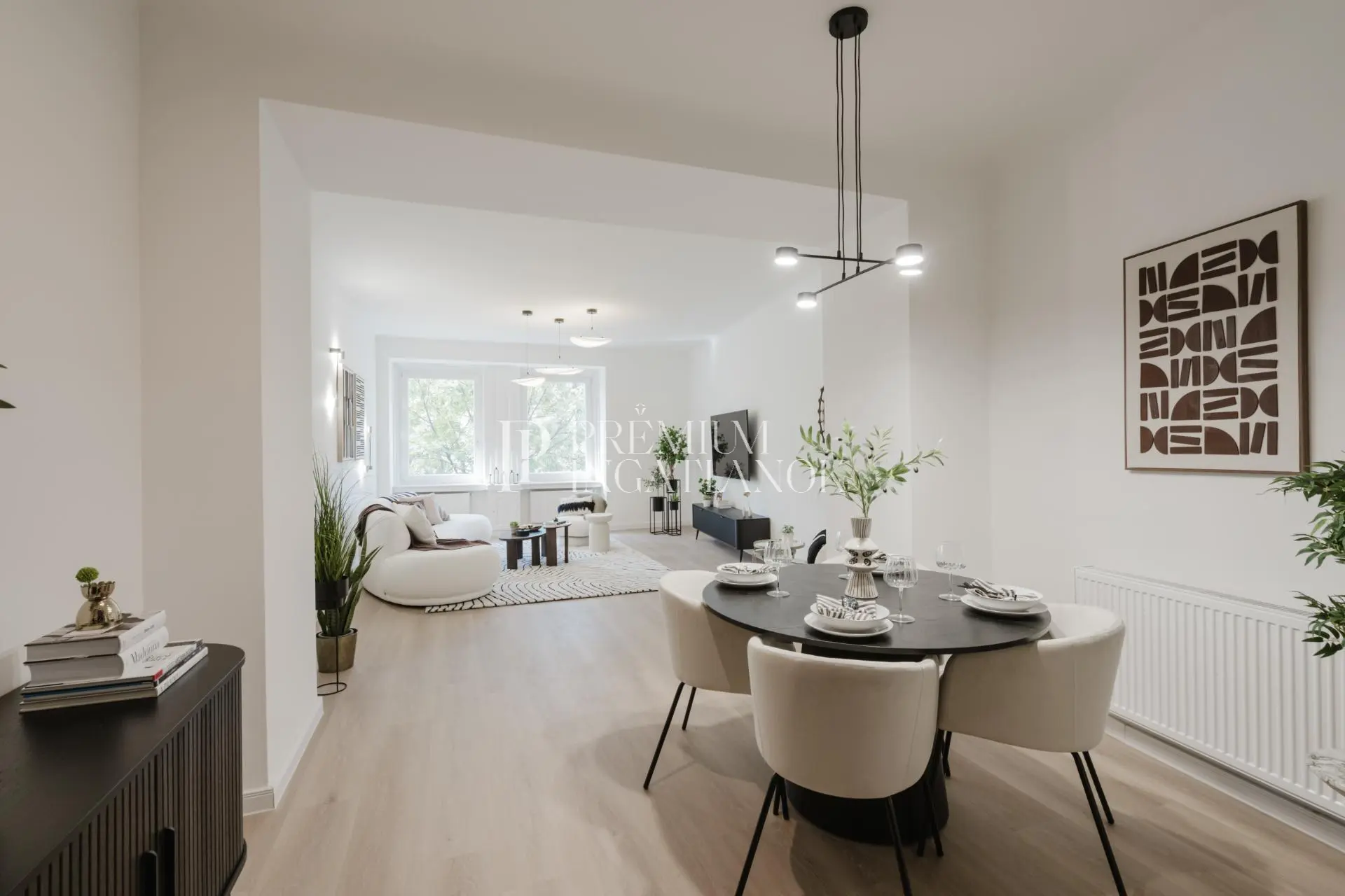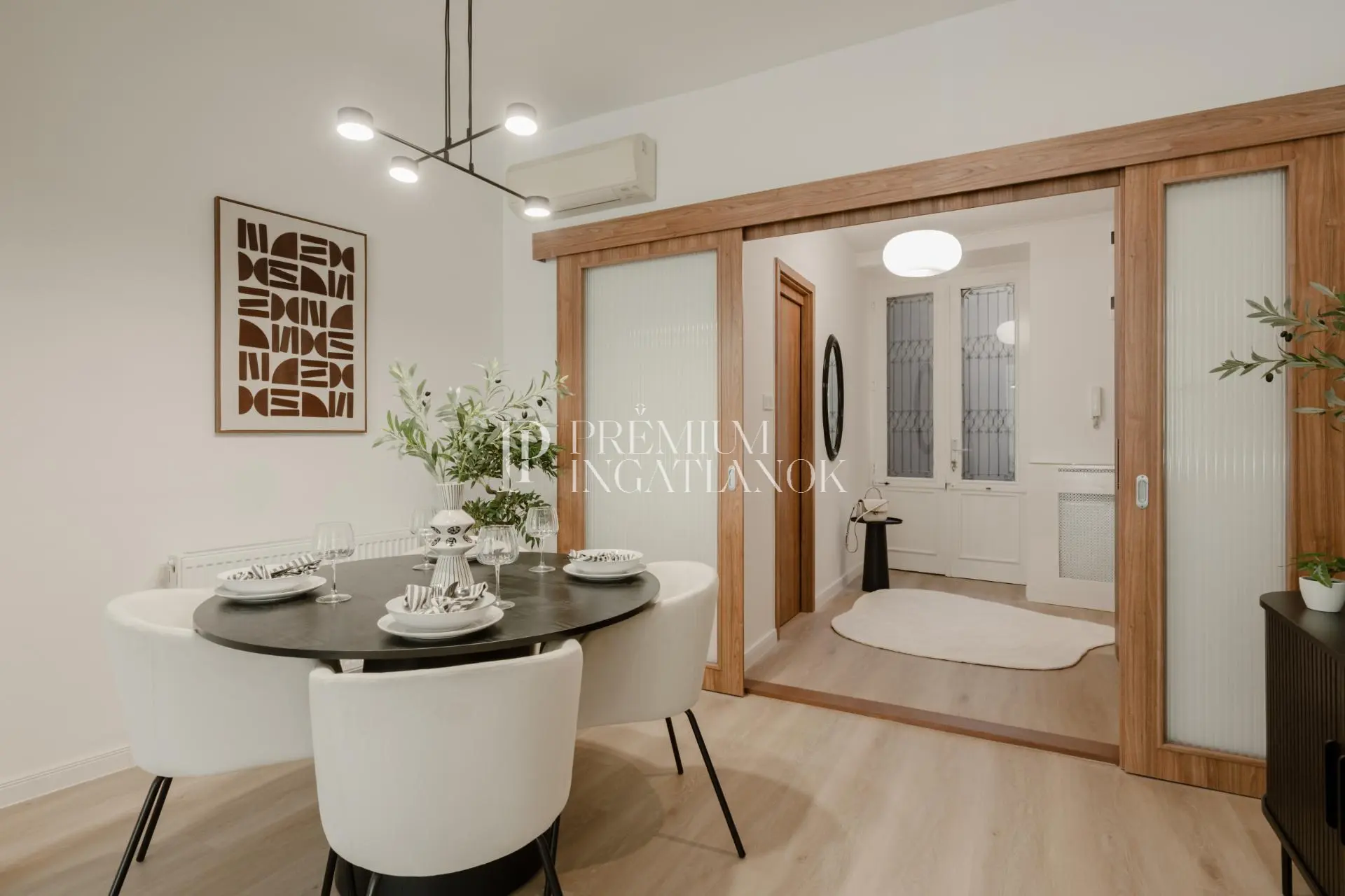 A világos, barátságos enteriőr természetes színekkel, prémium minőségű anyagokkal és letisztult, mégis meleg stílussal várja új tulajdonosát.