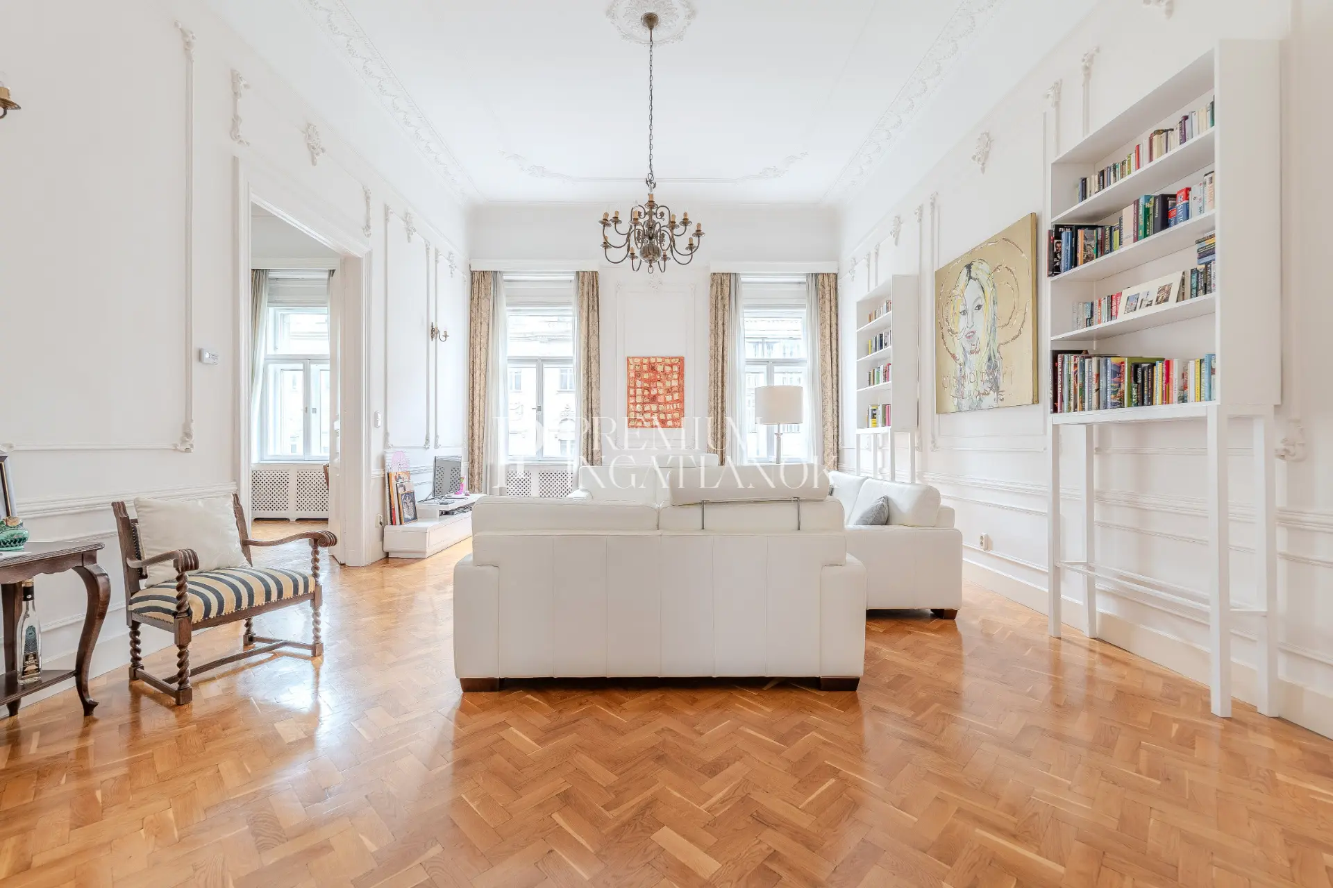 Budapest 5. kerület - Stukkókkal gazdagon díszített háromszobás nagypolgári lakás
