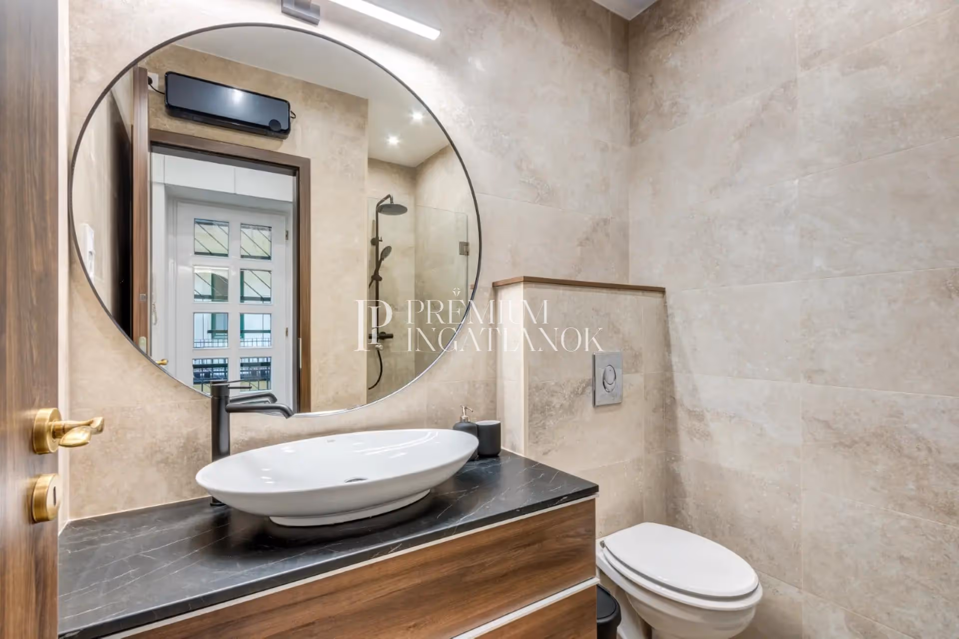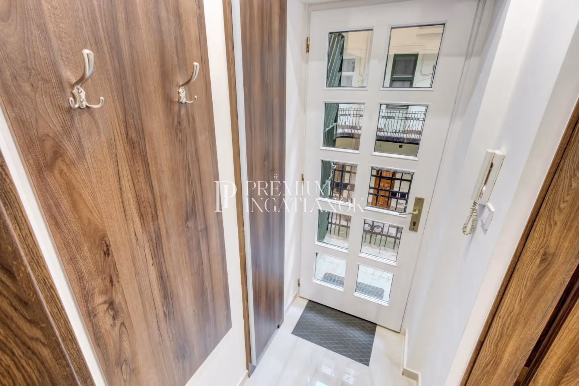 Join me on an imaginary stroll into the vibrant yet elegant heart of the 6th district, right next to the continuously renewing City Park (Városliget). We find ourselves on the historic Székely Bertalan Street, stepping into a quiet, refined civic building with an excellent residential community. The elevator comfortably takes us to the first floor. As we open the massive, multi-point security door, we are met not with a single traditional space, but with a brilliant architectural solution designed through an investor's lens: under a single legal title deed (officially 56 sqm), we find two completely separated luxury studio apartments with independent utility meters and private entrances.