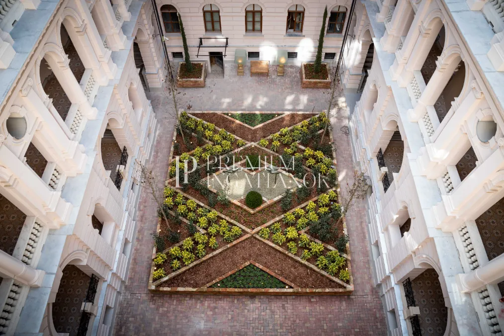 A Reneszánsz Udvar, a Pálmakert és az Angolkert látványa egyedülálló, a tetőteraszokról pedig lélegzetelállító a kilátás Budapestre!