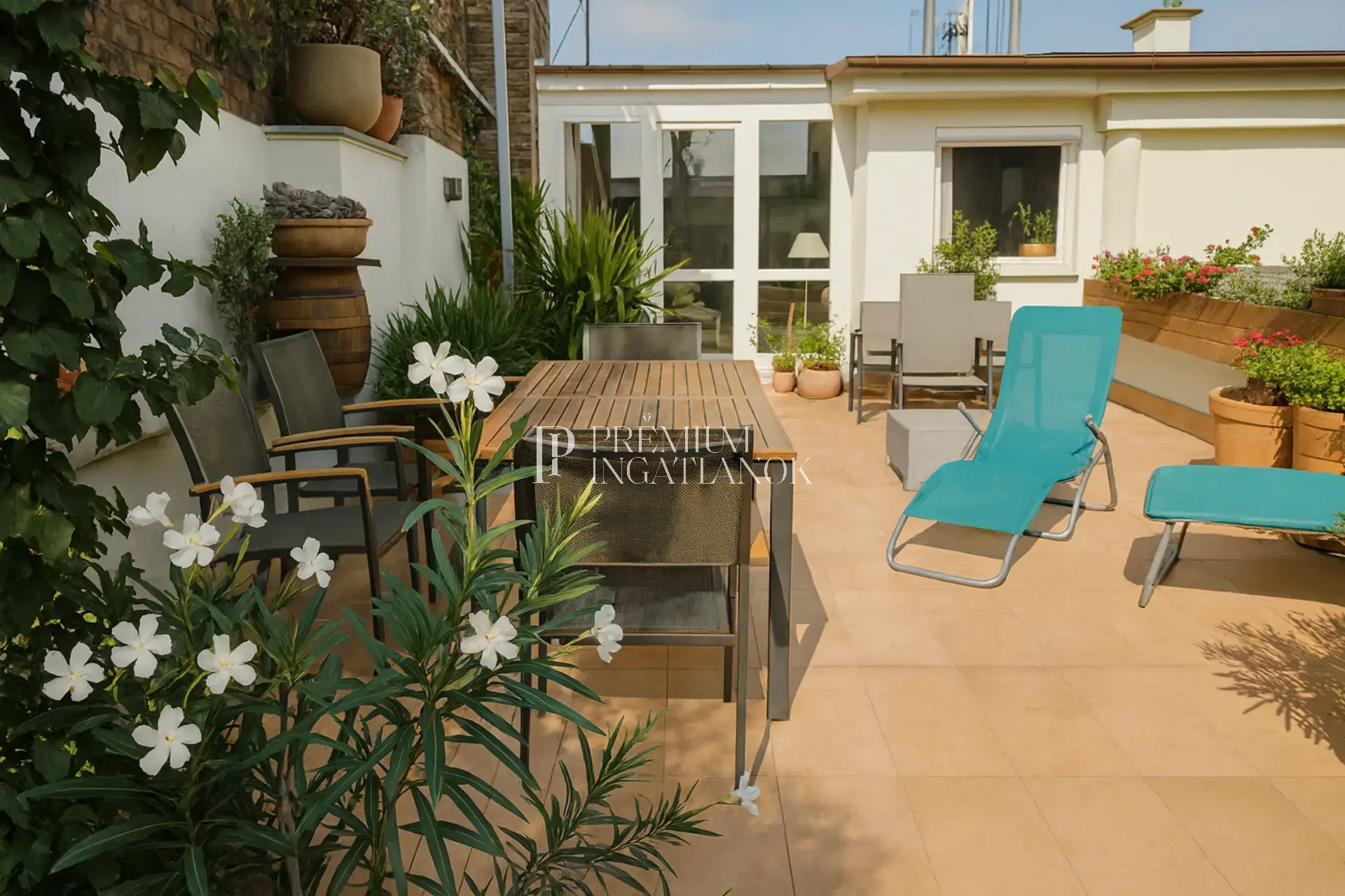 Elegáns, kétszintes otthon nagy terasszal a Kodály körönd közelében