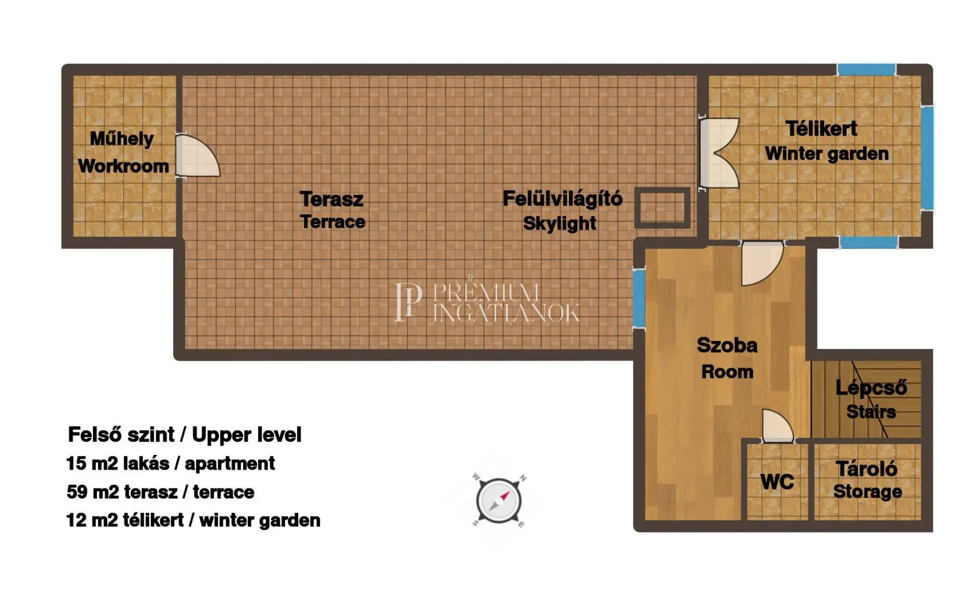 - különleges adottságok (kétszintes kialakítás, nagy terasz),