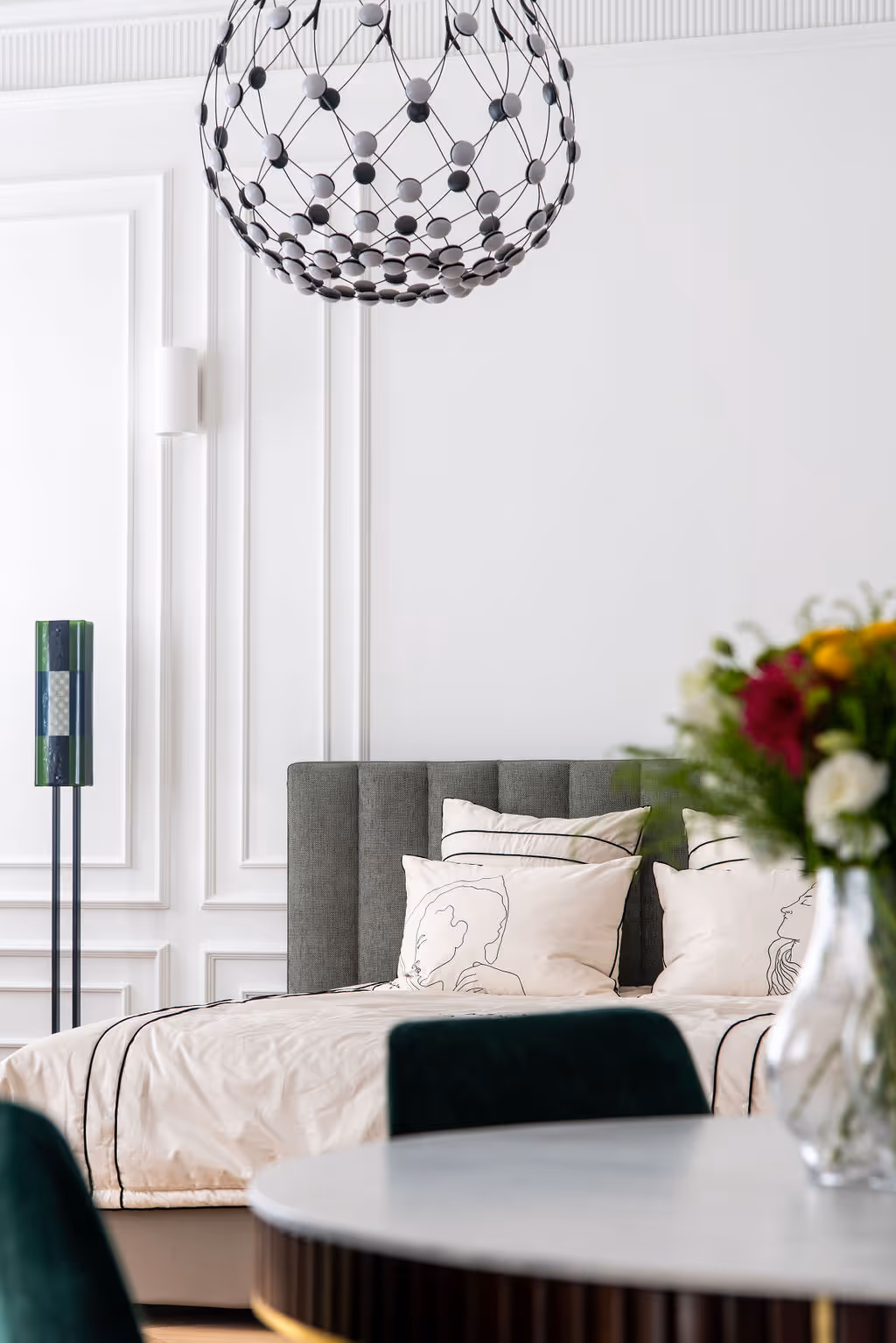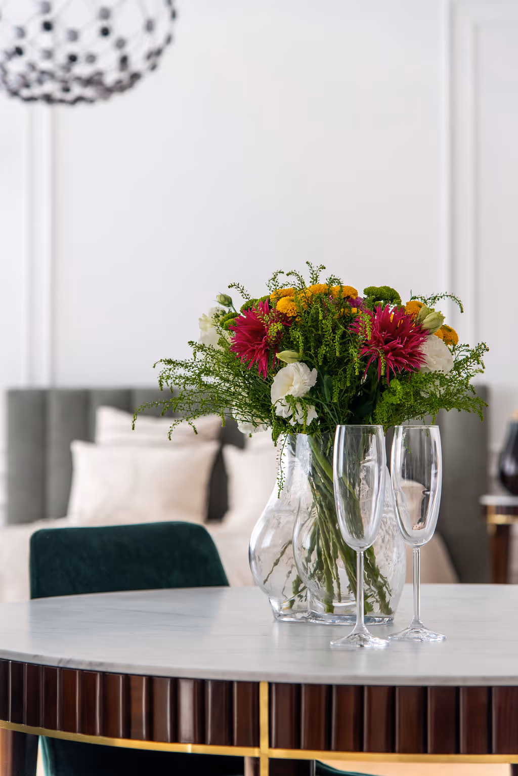 Az ingatlan exkluzív belsőépítészeti megoldásokkal és prémium minőségű bútorokkal berendezve várja új tulajdonosát. Az elegáns nappali ideális társasági események számára, míg a modern konyha-étkező kiválóan alkalmas családi összejövetelekhez.