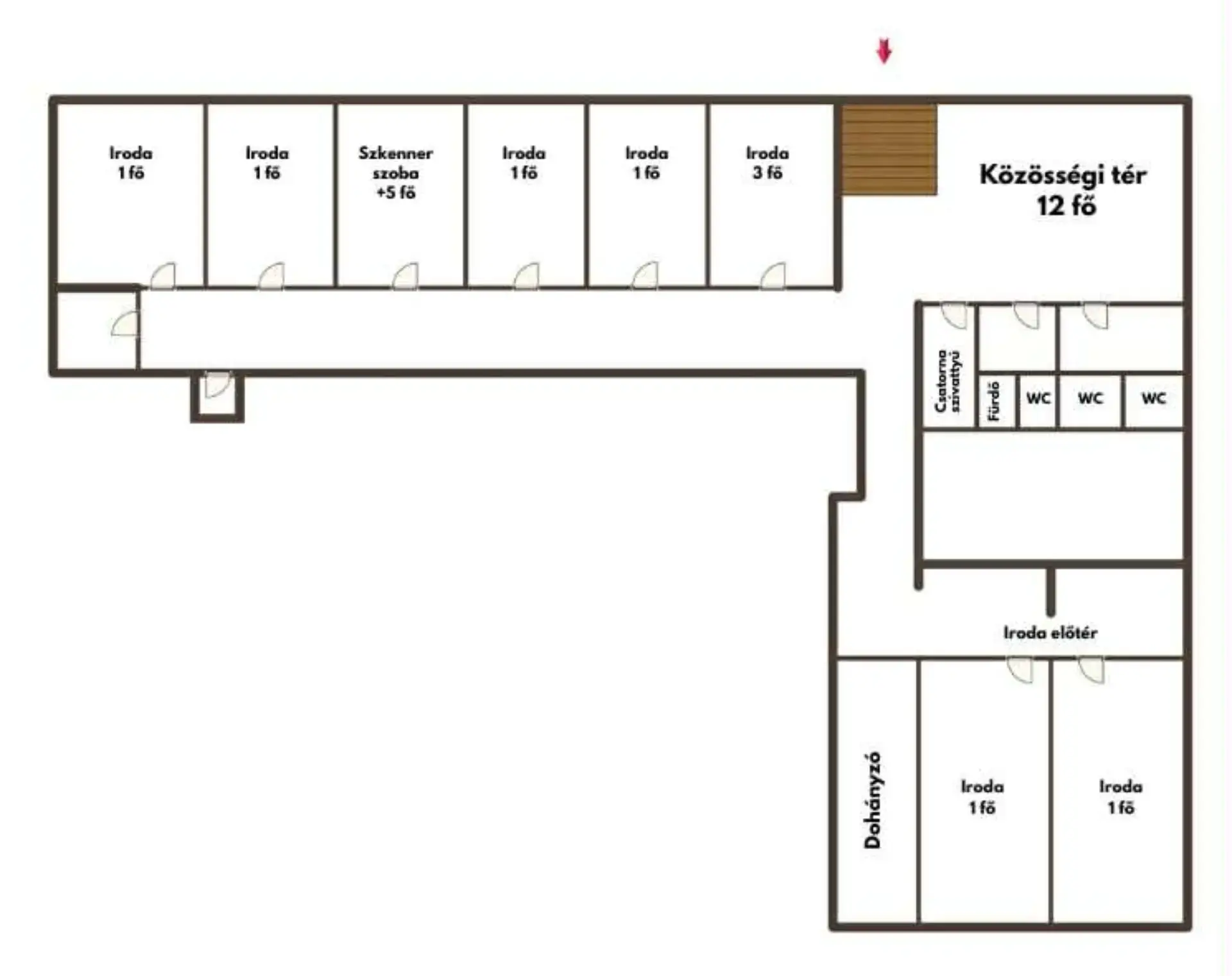 Akár 100 főig alkalmas több, jól tagolt irodatér és tárgyaló.