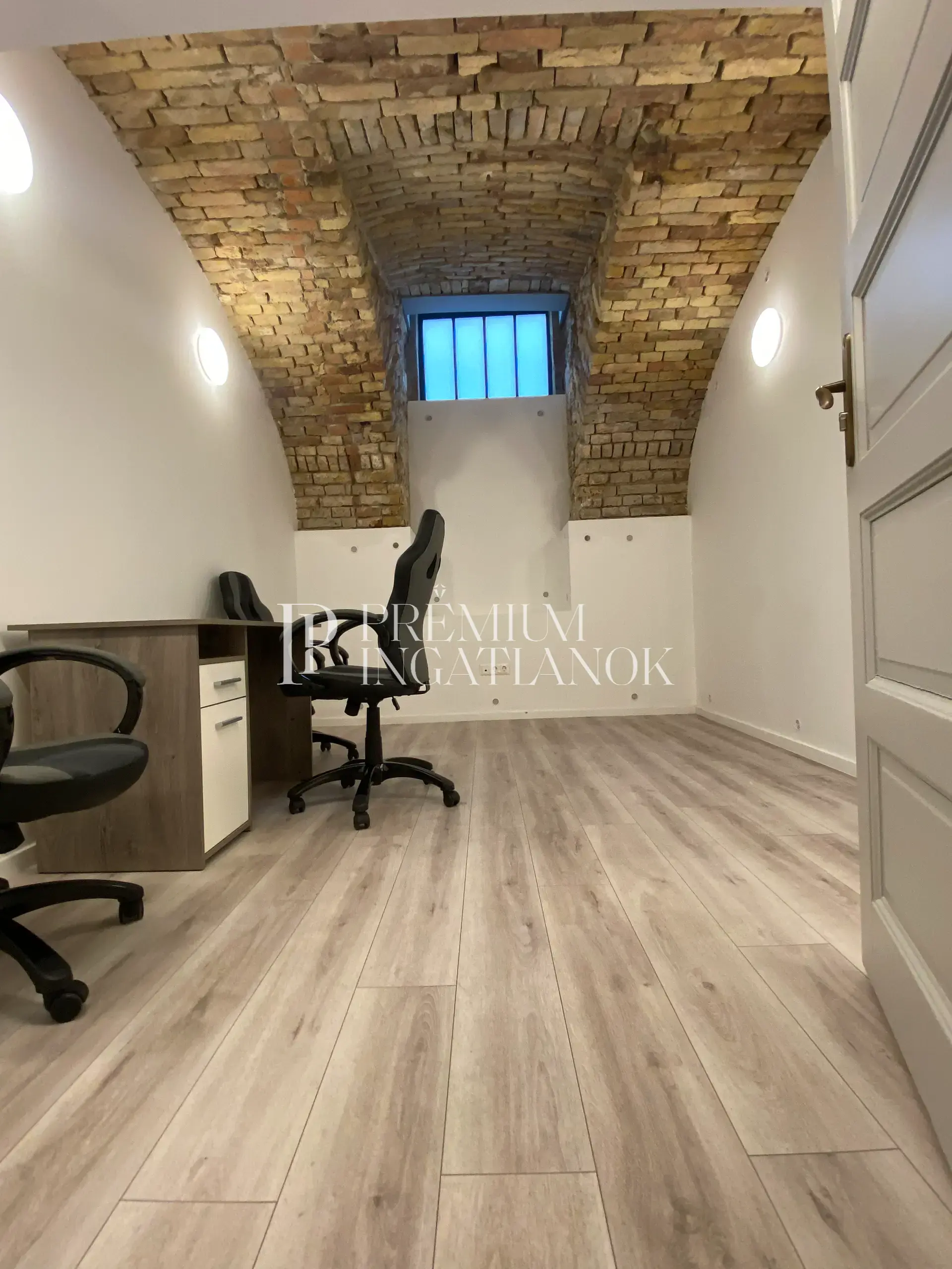 Eladó prémium iroda a Belváros szívében, azonnal költözhető, informatikailag teljesen felszerelt. A Király utcában található szuterén ingatlan jelenleg a tulajdoni lapon raktárként szerepel, azonban az átminősítés üzlethelyiséggé, irodává már folyamatban van. A valóságban egy óriási 252 nm-es lakást kapsz 11 szobával, kiemelten jó hangszigeteléssel és egyedileg 14 millió forintért kiépített hőszivattyús légtechnikával és H tarifával. Teljeskörű felújításon esett át az ingatlan 2024-ben, 3 rétegű nyílászárók, új hideg-meleg burkolatok, új beltéri nyílászárók találhatóak benne és a teljes vezeték hálózat cserélve lett.